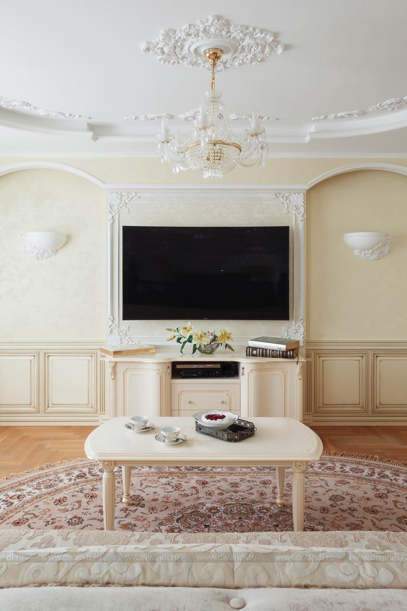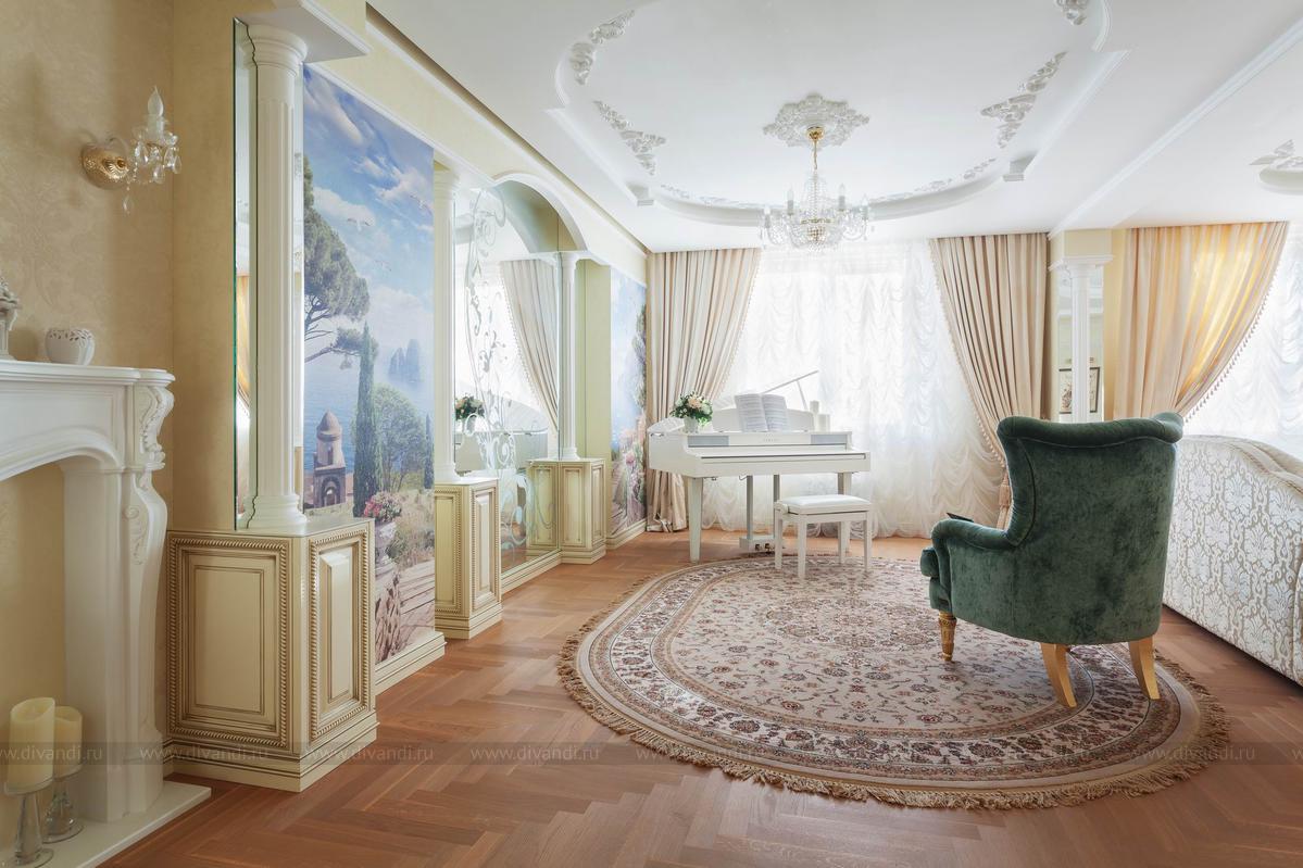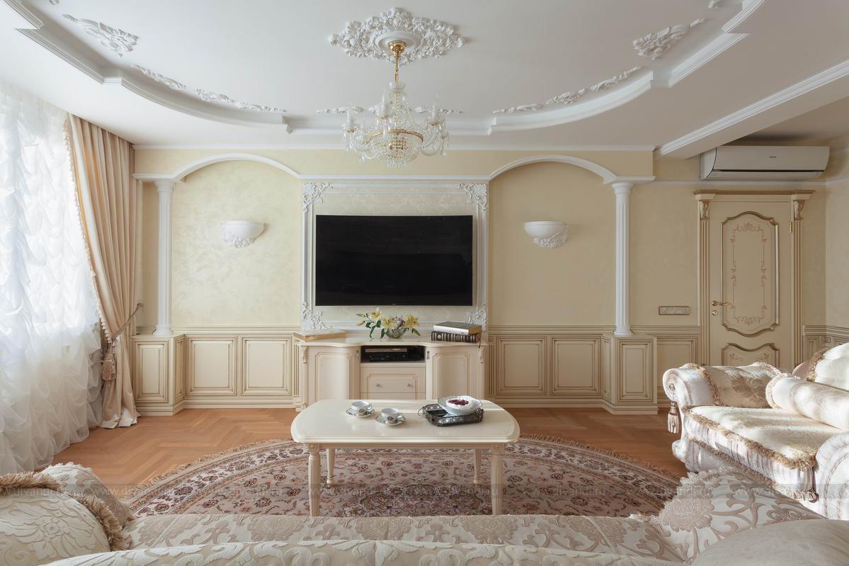 Квартира в классическом стиле с элементами ампира и введением современного художественного подхода к интерьеру. Фотограф Аскар Кабжан.