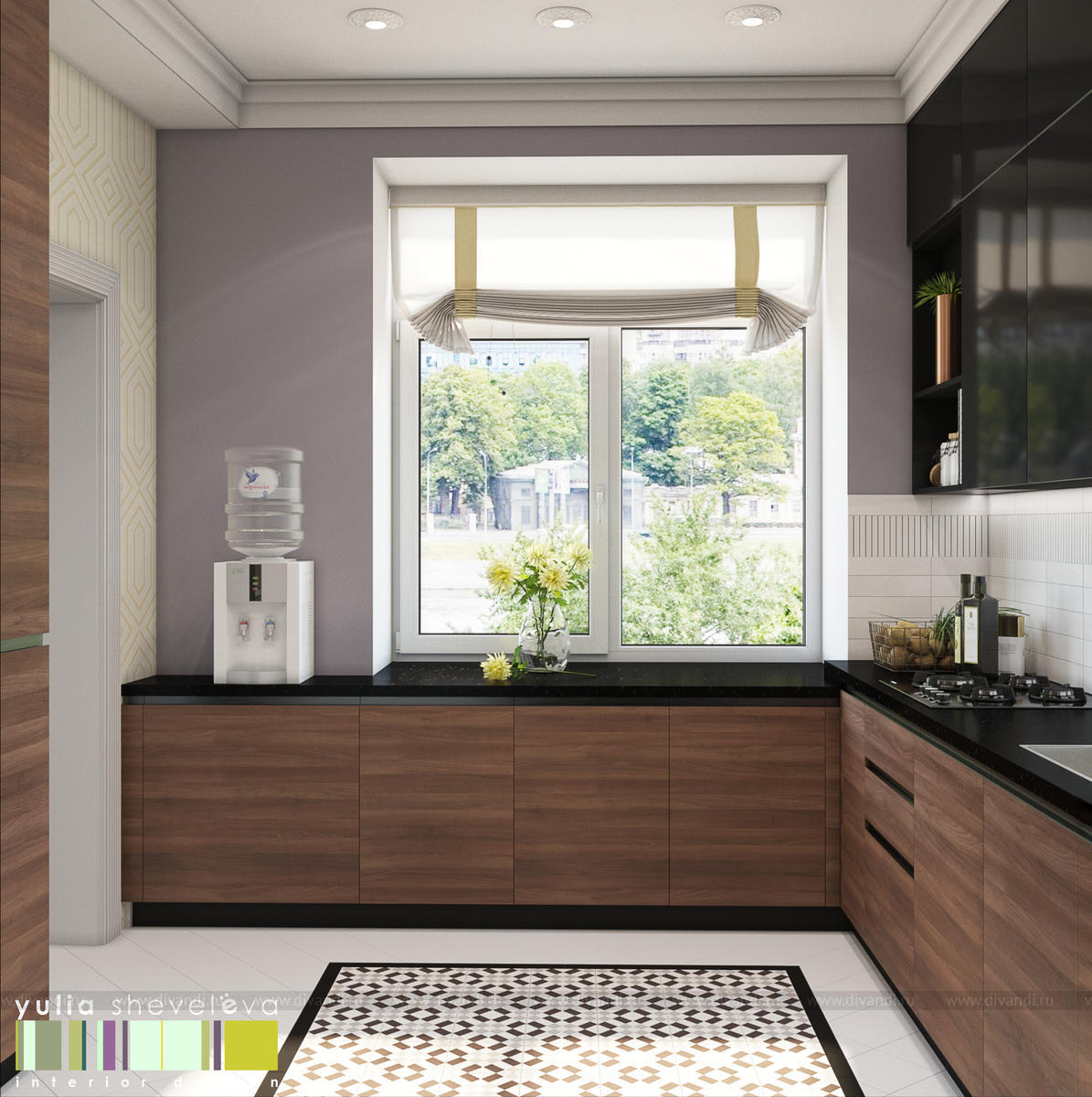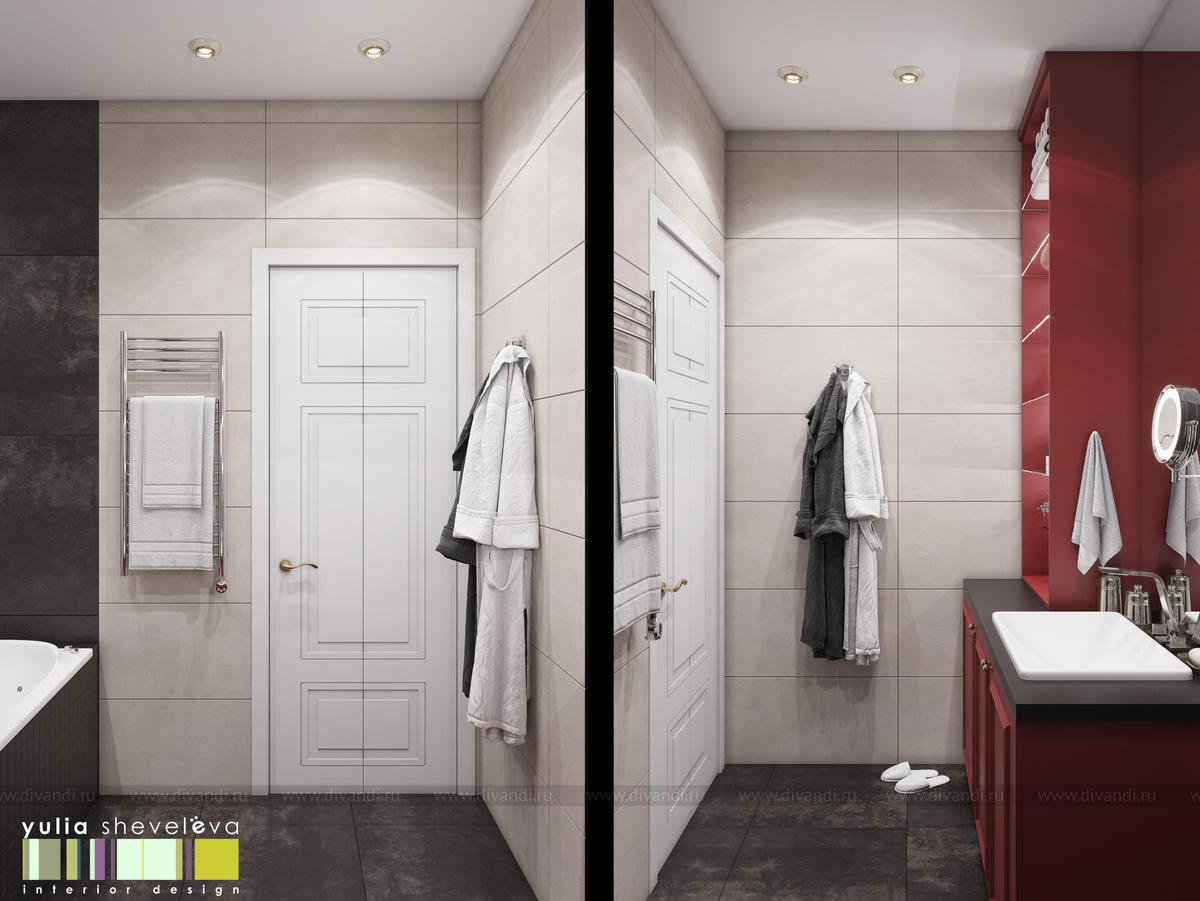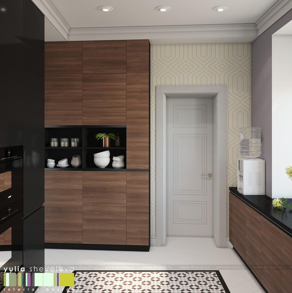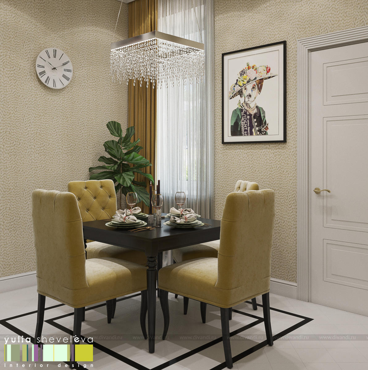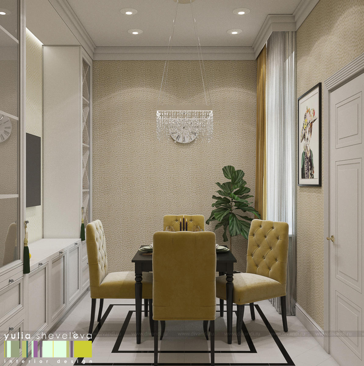 Оформление квартиры получилось очень необычным. С одной стороны, задача была немного поддержать классический стиль, с другой - добавить современных, простых и чистых линий, ярких цветов и смелых решений.