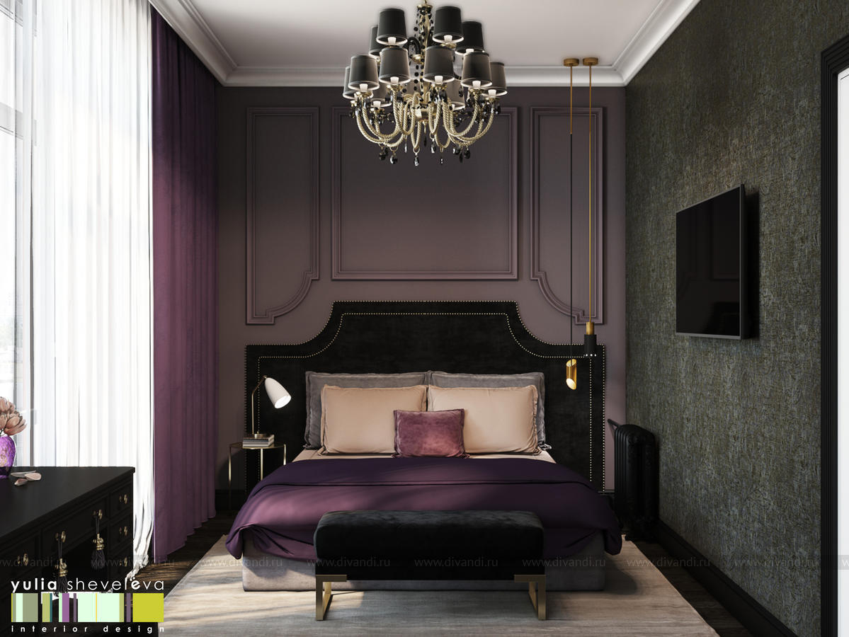 Особой получилась спальня. Она практически вся черного цвета. И в этом есть свой шарм. Словно бархатная шкатулка, комната получилась уютной, комфортной и в меру декорированной.