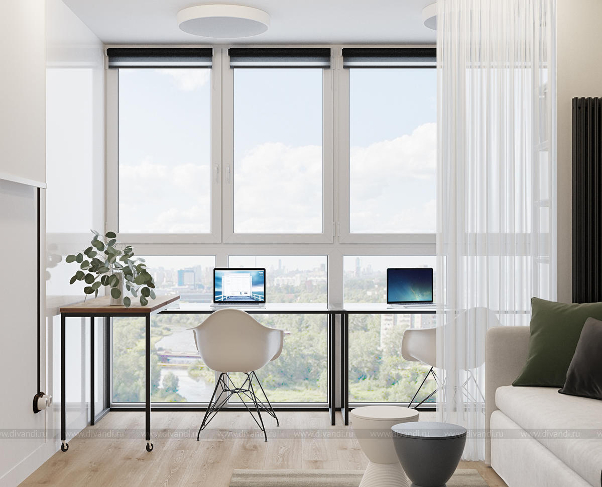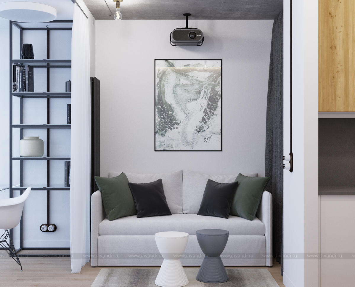 Перед нами стояла задача разработать дизайн интерьера крохотной квартиры площадью всего 25 кв.м. При этом уместить полноценную кухню, госиную и рабочую зону. Получилось многофункциональное пространство.