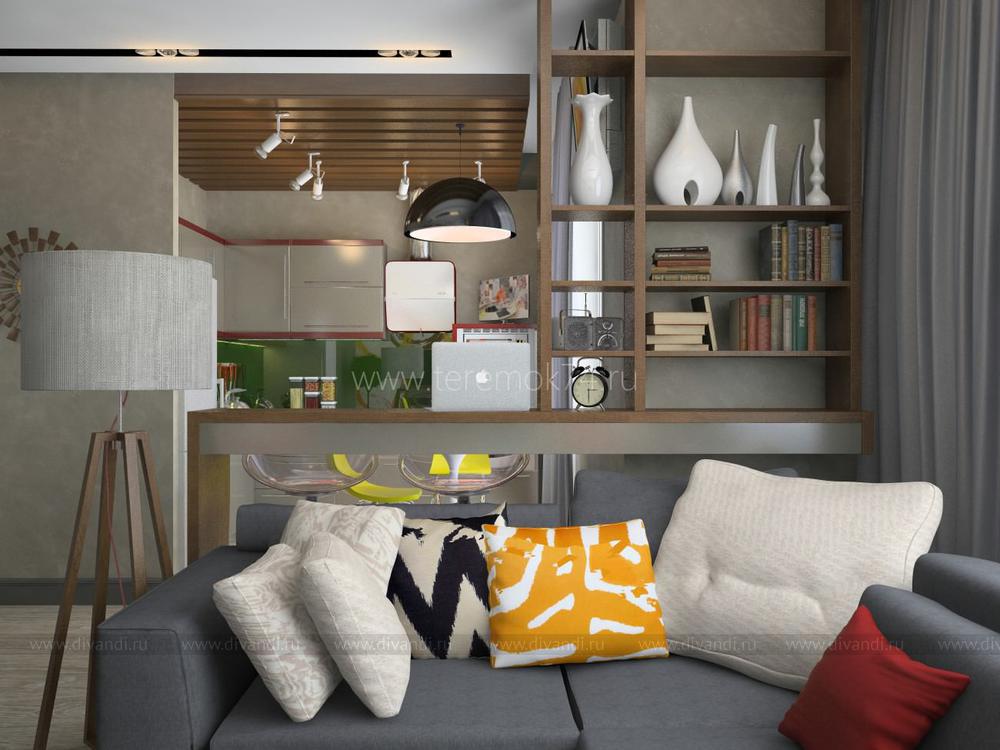 На сегодняшний день актуальным остается вопрос дизайна и обустройства малогабаритных квартир. Комфортное проживание в такой квартире во многом зависит от выбора стиля дизайна интерьера и правильности проведения ремонта. Несмотря на площадь, малогабаритную квартиру можно превратить в уютное, многофункциональное и уникальное жилье. Чтобы существенно расширить пространство малогабаритной квартиры нужно сделать ее перепланировку. Увеличить жилое пространство можно, если убрать перегородки отделяющие кухню от гостиной комнаты, таким образом, визуально увеличивая жилое пространство.