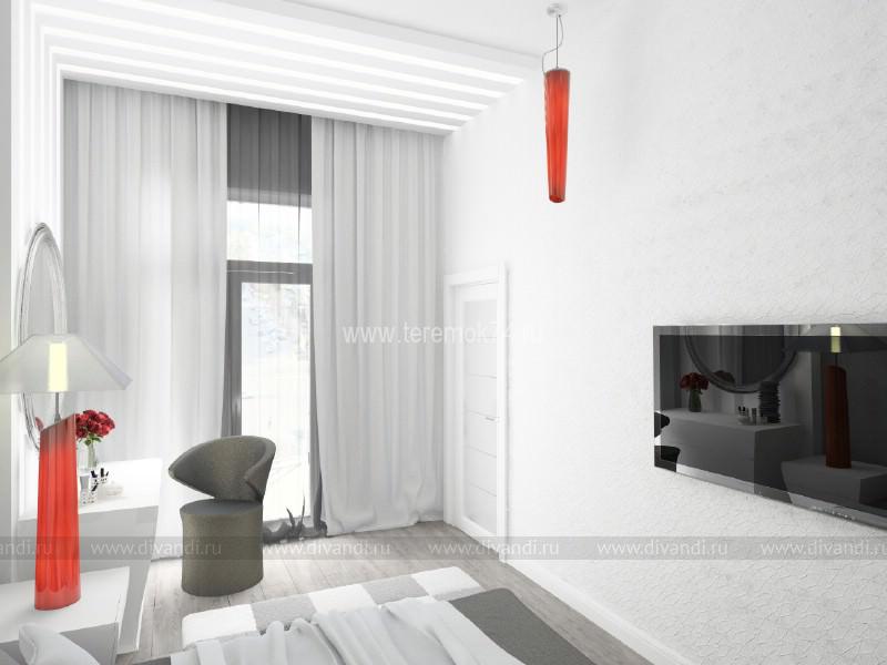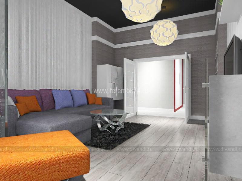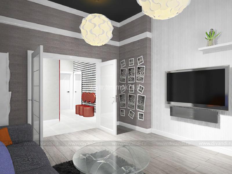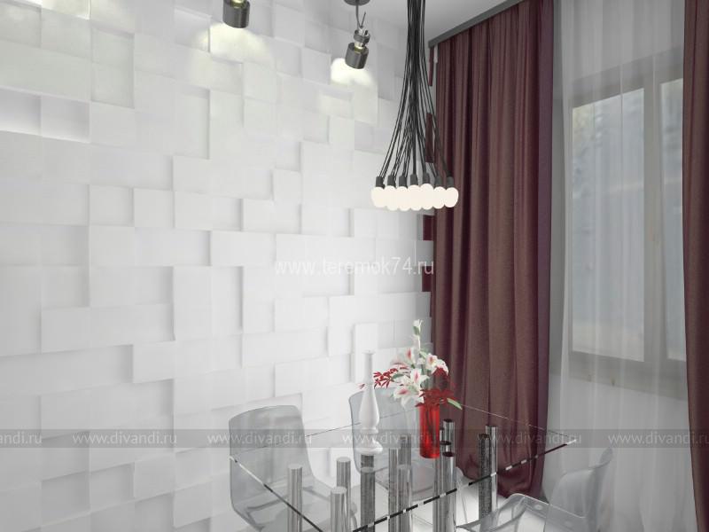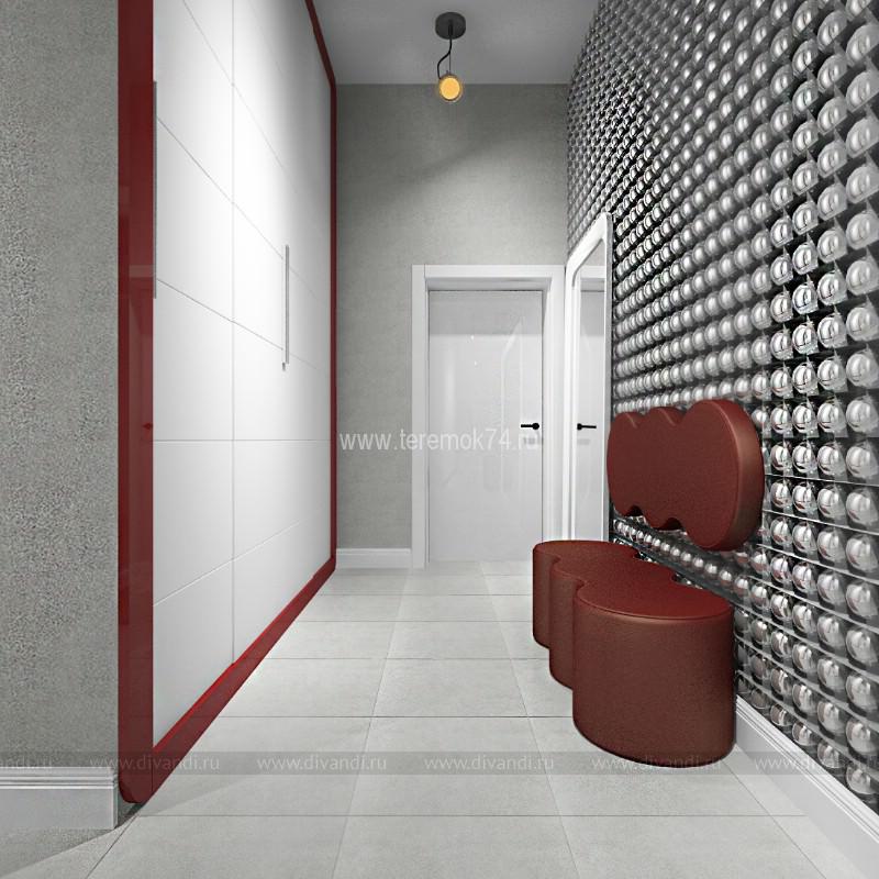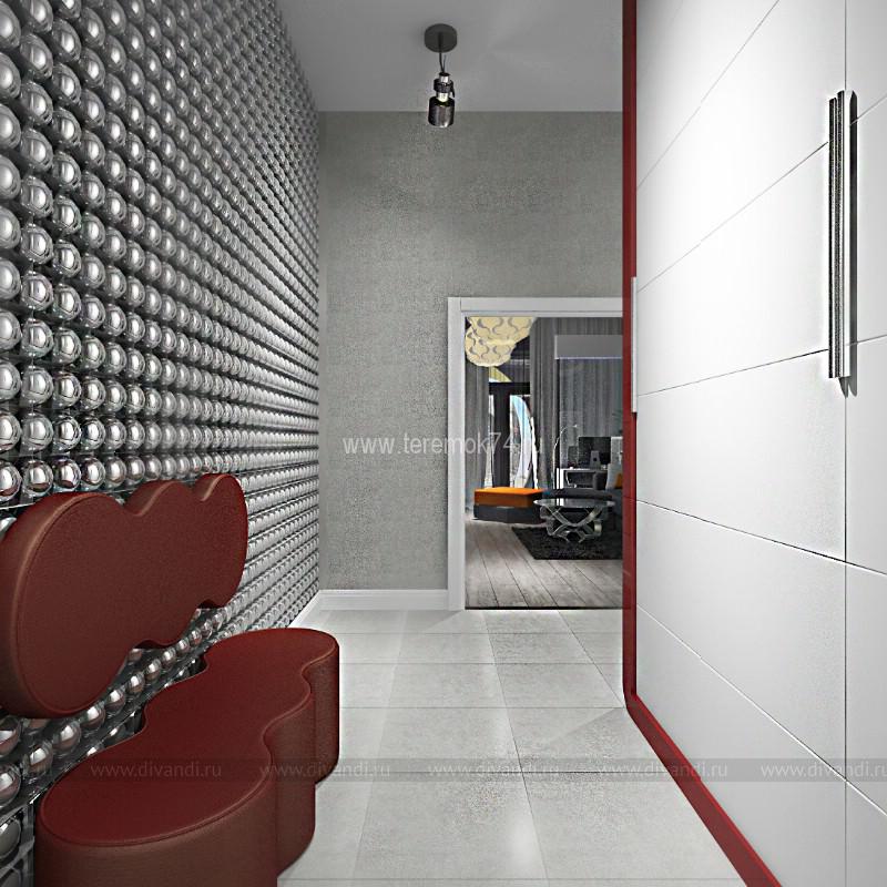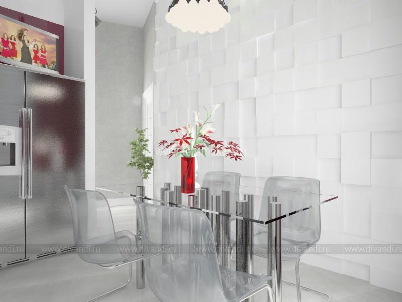 Квартира общей площадью 100 кв.м. находится на площади Революции. Особенностью этого проекта является планировка квартиры. В дизайне этой квартиры мы использовали контрастные цвета, современные материалы, глянцевые поверхности. Так в прихожей у нас появились необычные 3d обои круги, в санузле политическая карта мира на полу, стеновые панели и стеклянный фартук на кухне, handmade люстра над обеденным столом, специально разработанный обеденный стол. Гостиная комната разделена на 2 зоны: зона комфортного отдыха перед телевизором, и зона мини кабинета разделенные при помощи пузырьковой аквапанели. В санузле, чтобы подчеркнуть неправильную форму планировки мы предложили ванную в скошенном варианте и плитку под углом. Главным декоративным элементом кухни – выступает интересная стена в виде квадратов разной глубины. Она будет реализована при помощи панелей МДФ. Также по индивидуальному заказу будут выполнена центральная люстра в виде пучка лампочек и стеклянный обеденный стол на 8-ми хромированных ножках. В место традиционной плитки и мозаики на фартук мы предложили стекло. Запросы у девочек и мальчиков очень разные, но, тем не менее, им нужно ужиться в одной комнате. Прежде всего, мы зонировали пространство: общие зоны – зона для игр и раздельные зоны – спальная зона, системы хранения и рабочая зона. В спальне мы раздели зоны сна и туалетного столика при помощи необычного светильника из светодиодной ленты и матового стекла в виде полос, проходящих через стену и потолок. Яркими акцентами в комнате выступают красные светильники, которые могут создать особую атмосферу в ночное время.