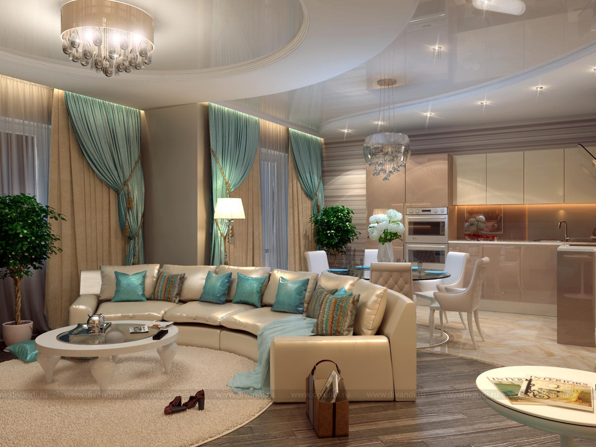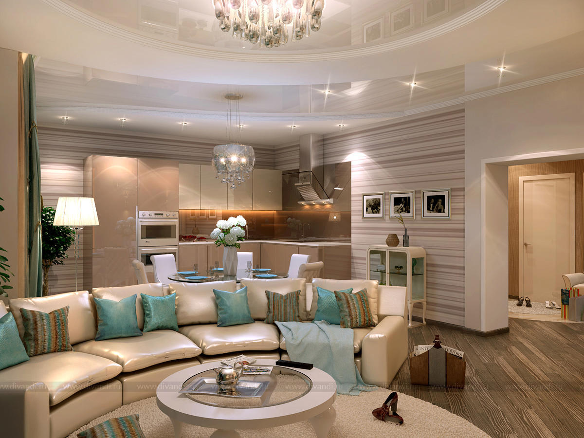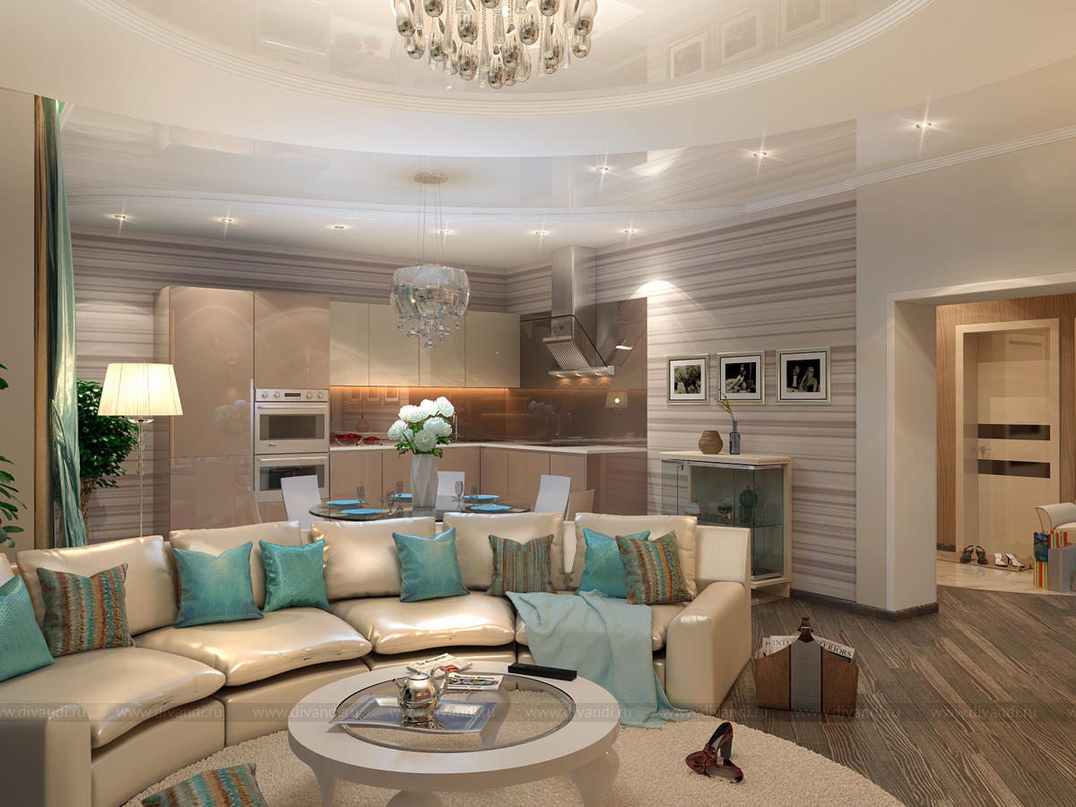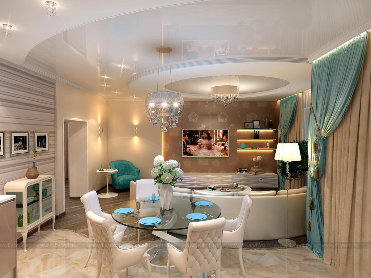 Квартира в современном стиле с элементами ар деко в нежных тонах, сочетание бирюзового цвета и теплых оттенков делает квартиру в данном дизайне более уютной и комфортной.
