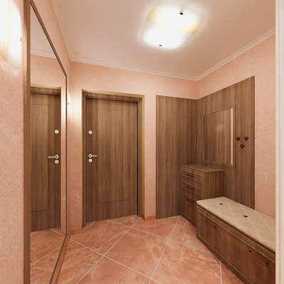 Изначальная планировка квартиры потребовала внесения ряда корректировок. При входе была выделена зона прихожей, благодаря чему, пространство холла приобрело более органичные пропорции.