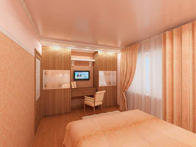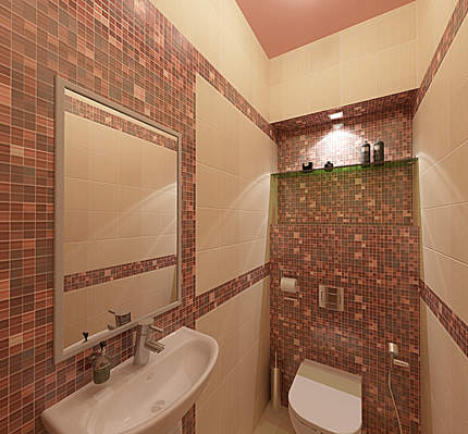 Вся палитра отделочных материалов решена на сближенных цветах, используя все богатство палитры от золотисто-желтого до терракотово-красных оттенков.