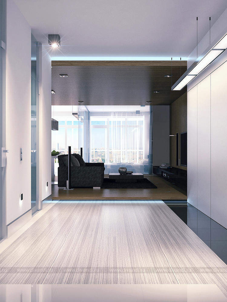 Описание проекта: Основная задача дизайнера в данном проекте – формирование комфортного жилого пространства в условиях недостаточно удобного существующего планировочного решения небольшой современной квартиры. Новое, предложенное автором проекта объемно-планировочное решение представляет собой общее светлое пространство с кубическим объемом в центре помещения. В таких условиях «куб» является самостоятельной формой. Он акцентирует внимание на самой «живой» и активно используемой зоне квартиры, формирует интерьер и создает эффект пространства в пространстве.