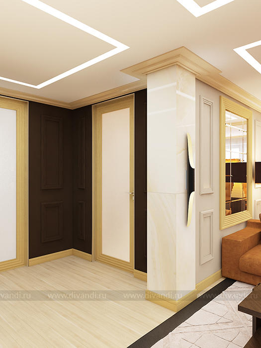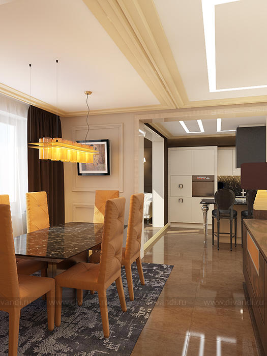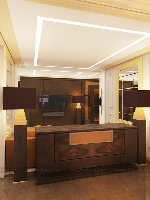 Большая квартира в ЖК «Премьер» в стиле Ар Деко. В насыщенных теплых тона. Была проведена перепланировка, соединены две квартиры между собой! Дорогой красивый интерьер!