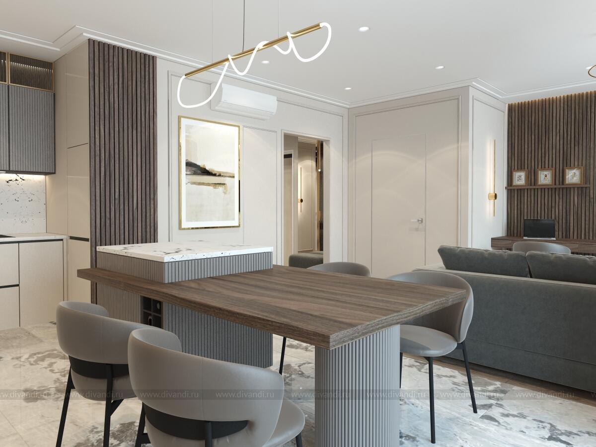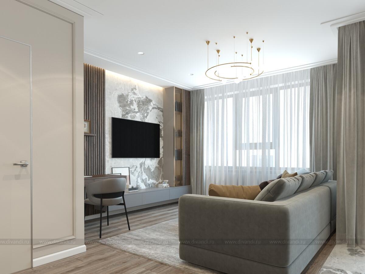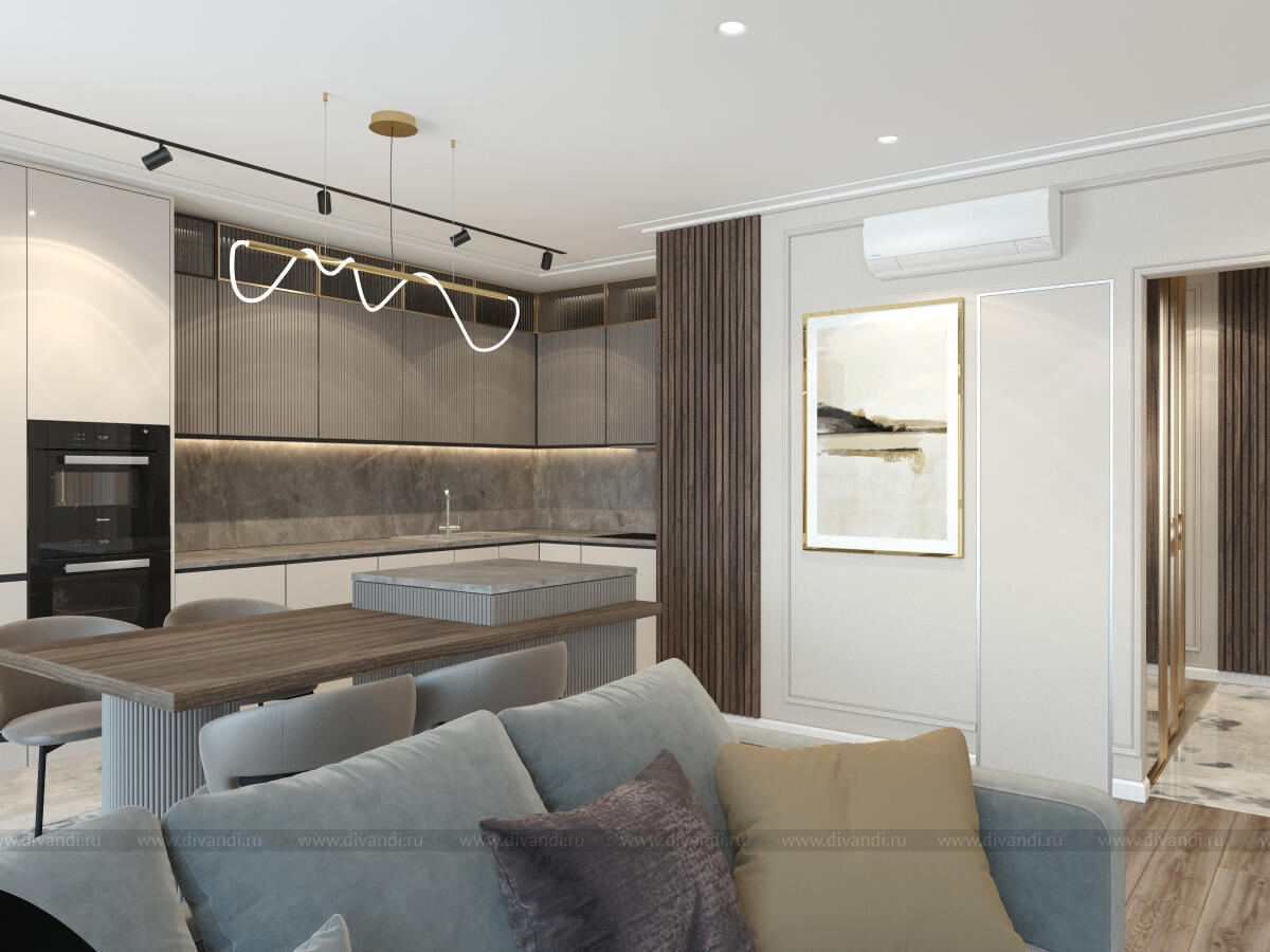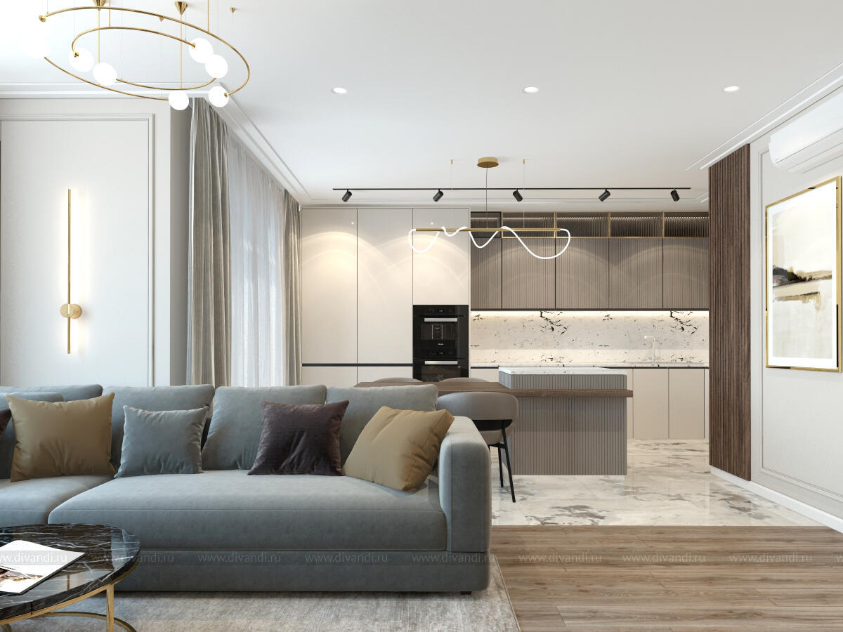 Гостиная-кухня в квартире ЖК "Изумрудный бор"
