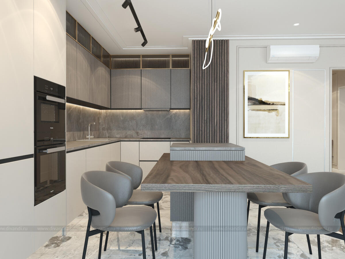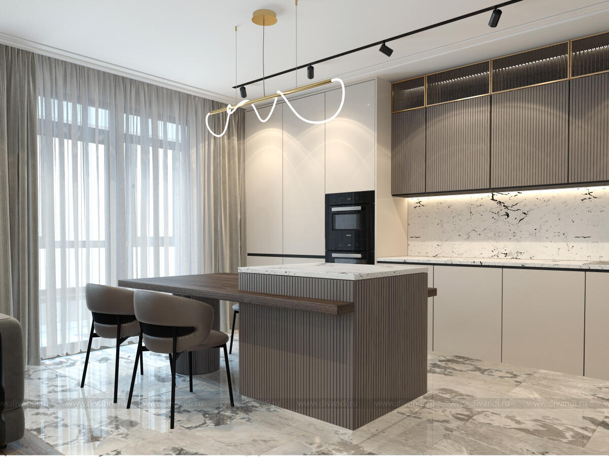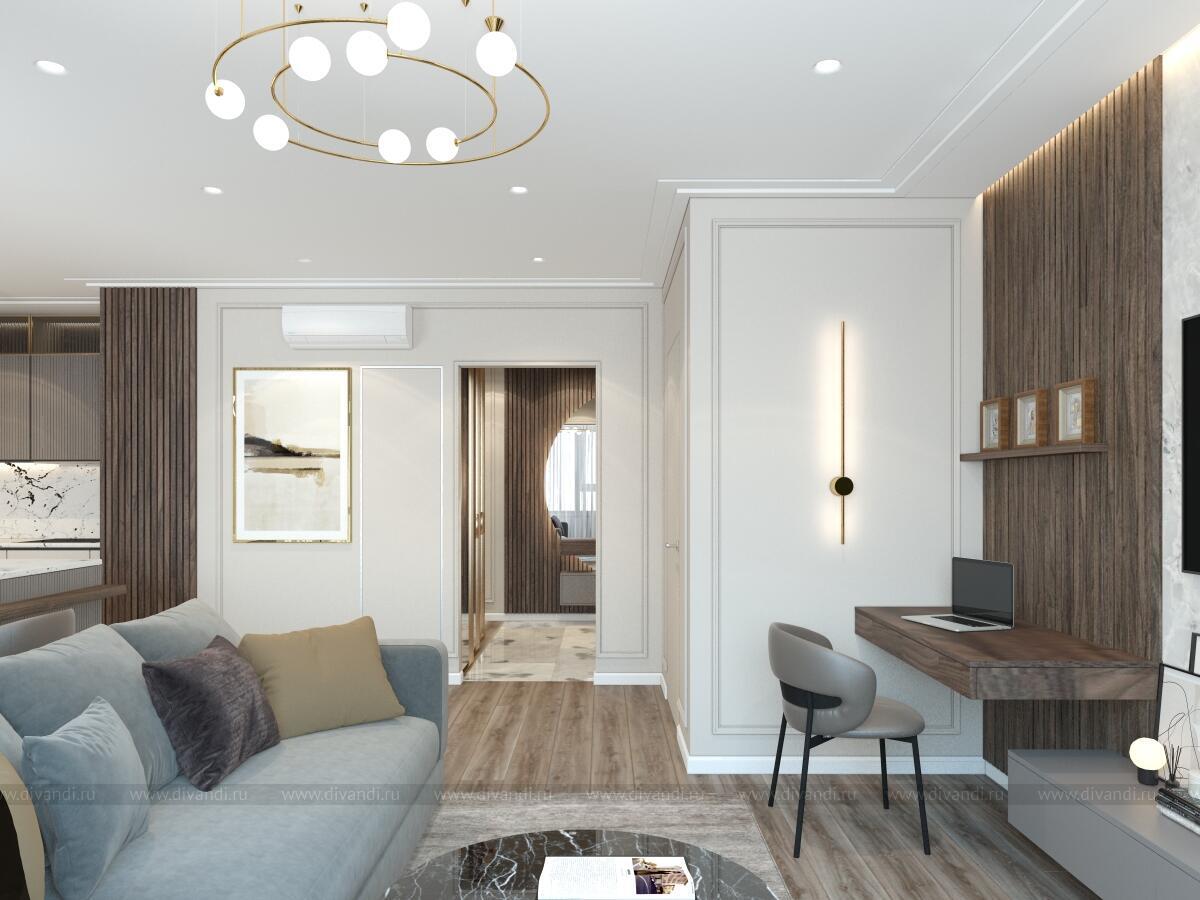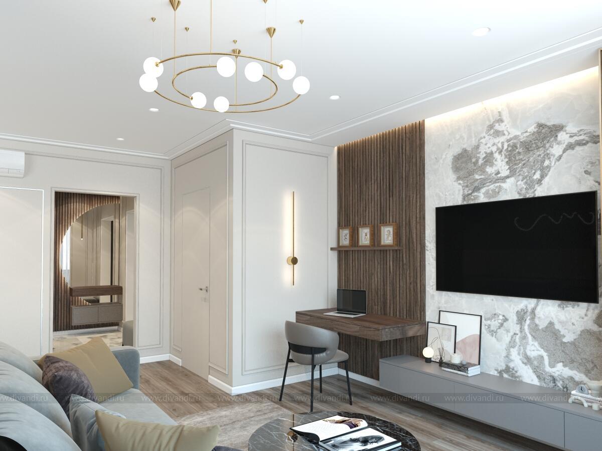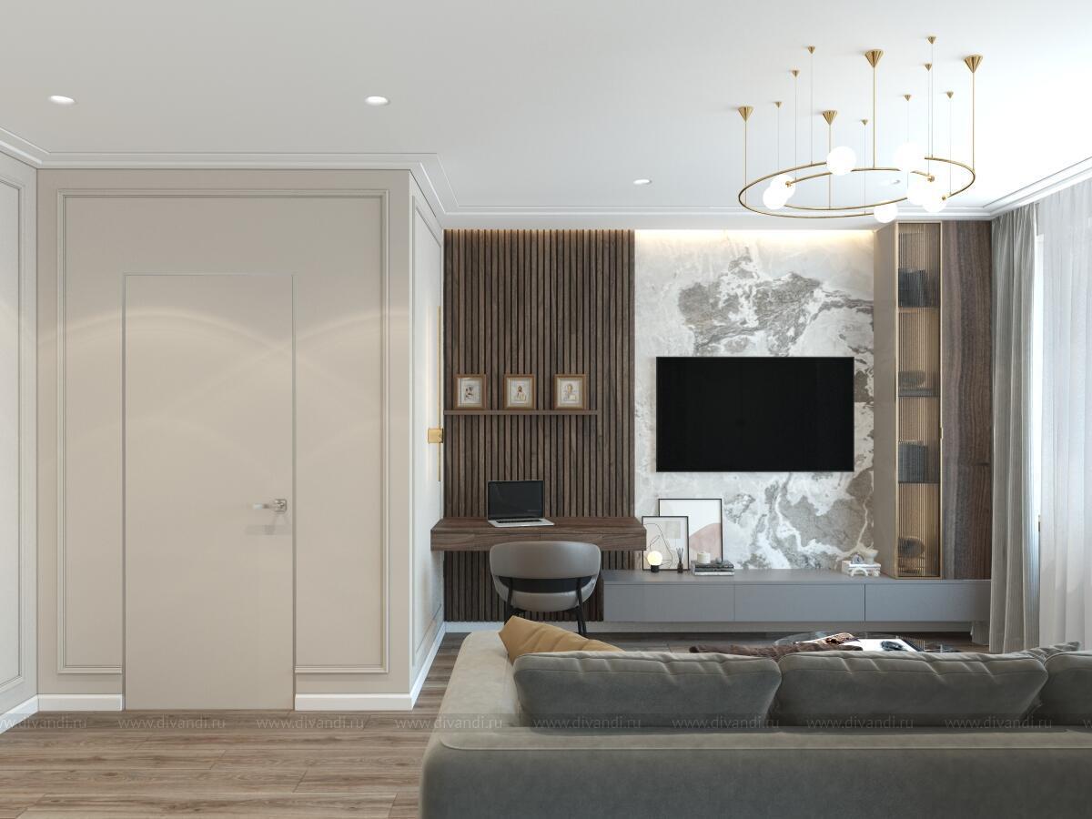 Гостиная-кухня в квартире ЖК "Изумрудный бор"