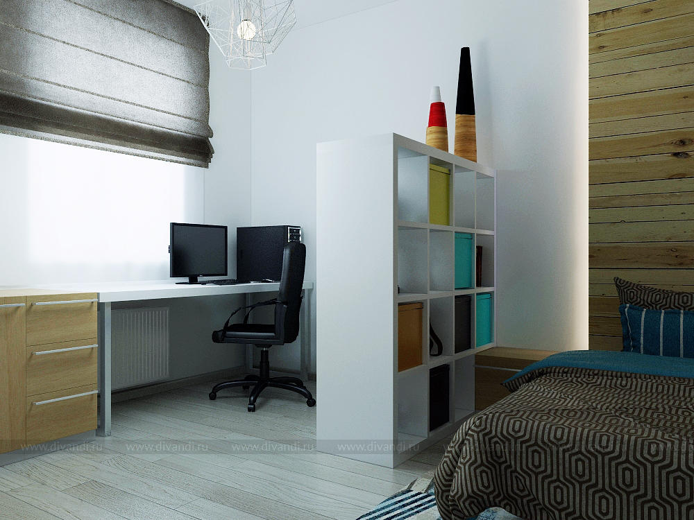 Трехкомнатная квартира для молодой семьи. Спальня, совмещенная с кабинетом.