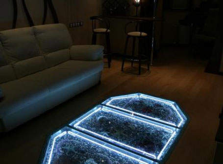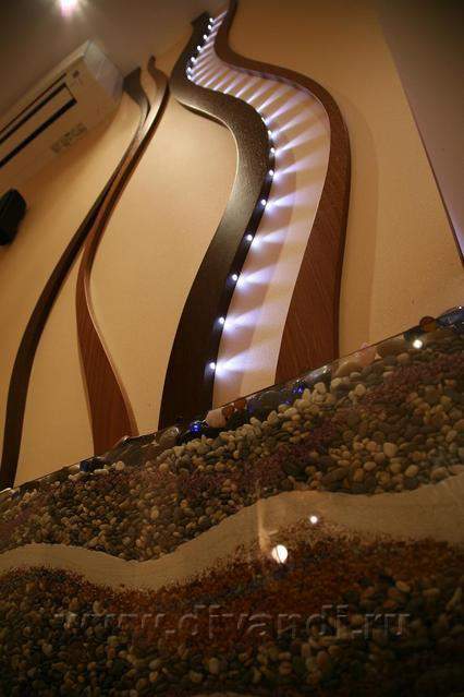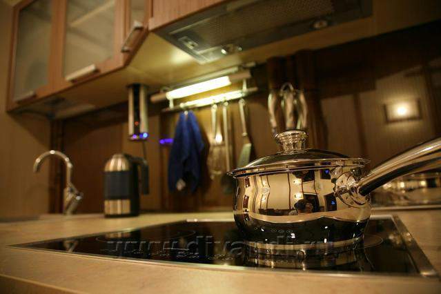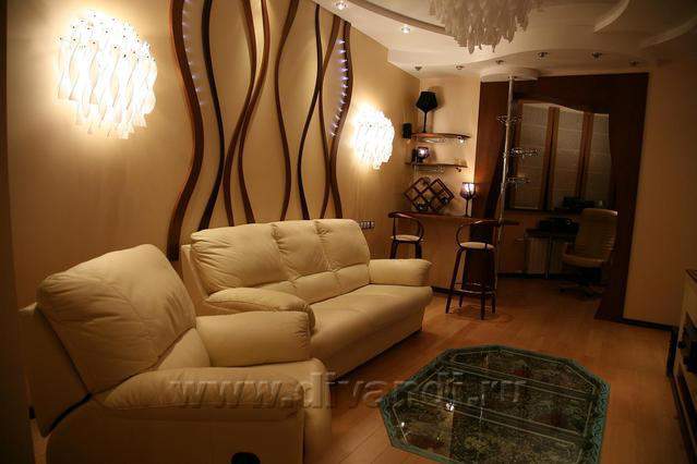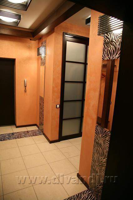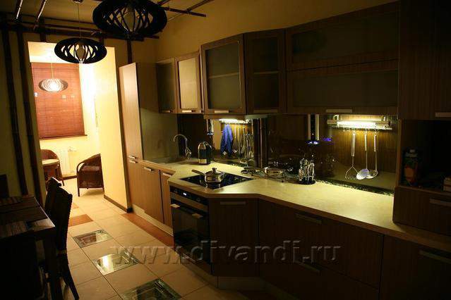 В интерьере данной квартиры идет смешение нескольких стилей, а нотка морской стихии завершает идеи плавных линий в холе и строгость линий в столовой.