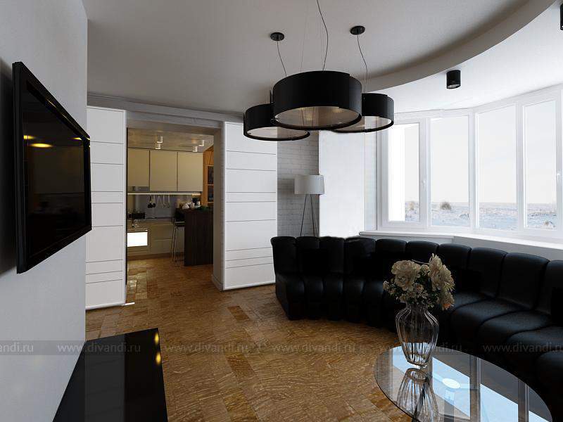 Изменение первоначально существующей планировки квартиры позволило сделать пространство более просторным для проживания. Также было решено выделить зону гардеробной в спальне и соединить гостиную с коридором.