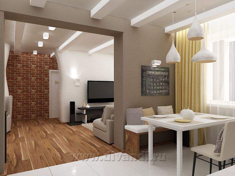 Интерьер квартиры выполнен в современном стиле. Многообразие фактур и текстур, грубая декоративная штукатурка в сочетании с глянцевым керамогранитом и деревянным полом, а также деревянными арт-объектами – все это сделало интерьер не только интересным, но и уютным.