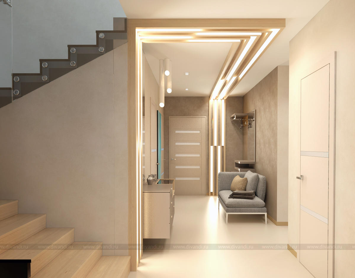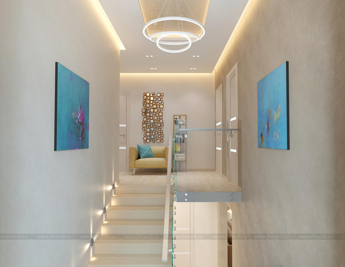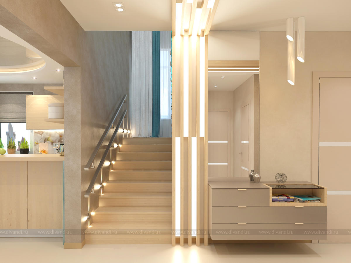 Дизайн лестничного холла в коттедже, Московская область