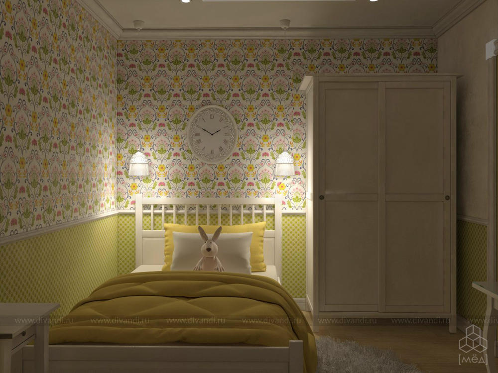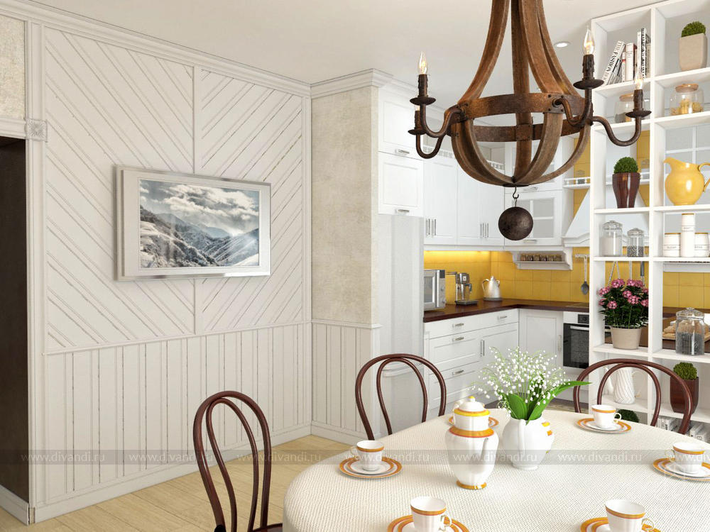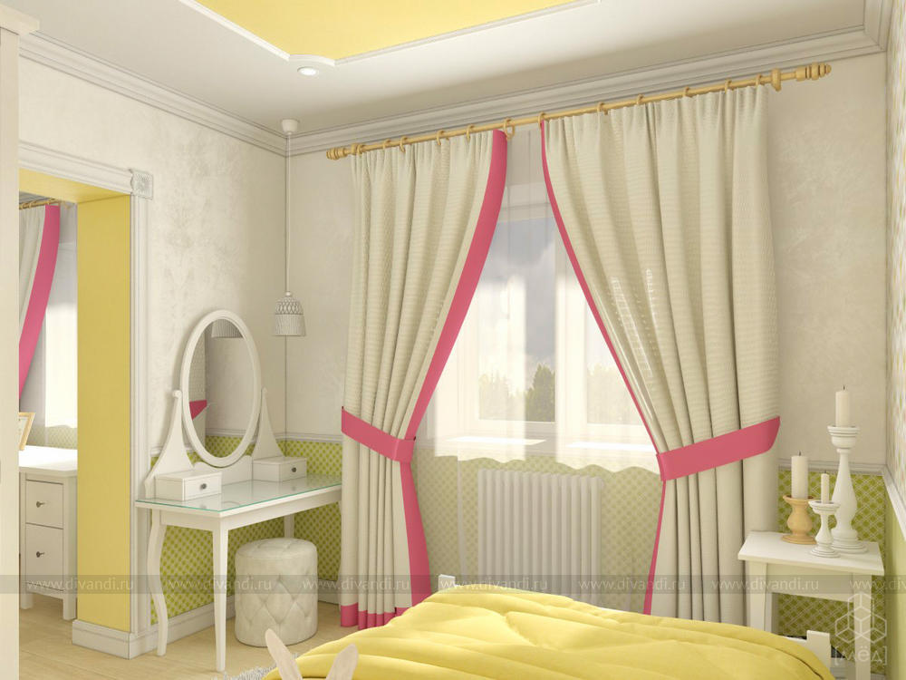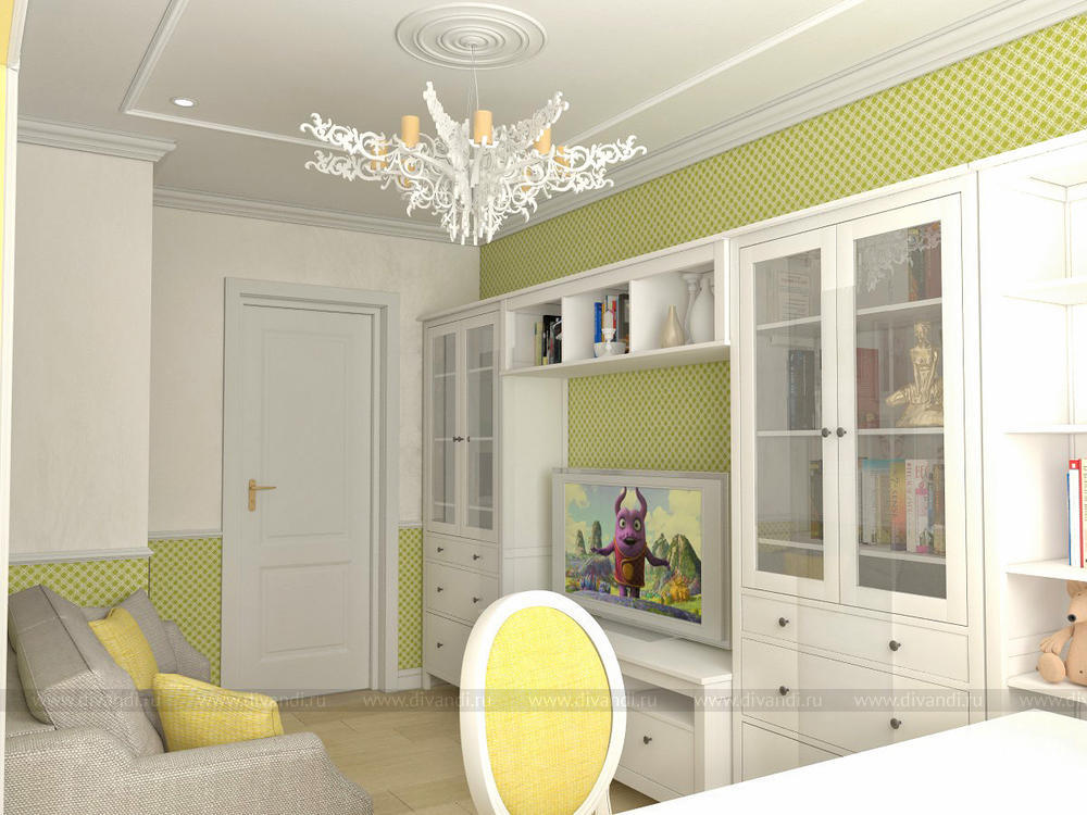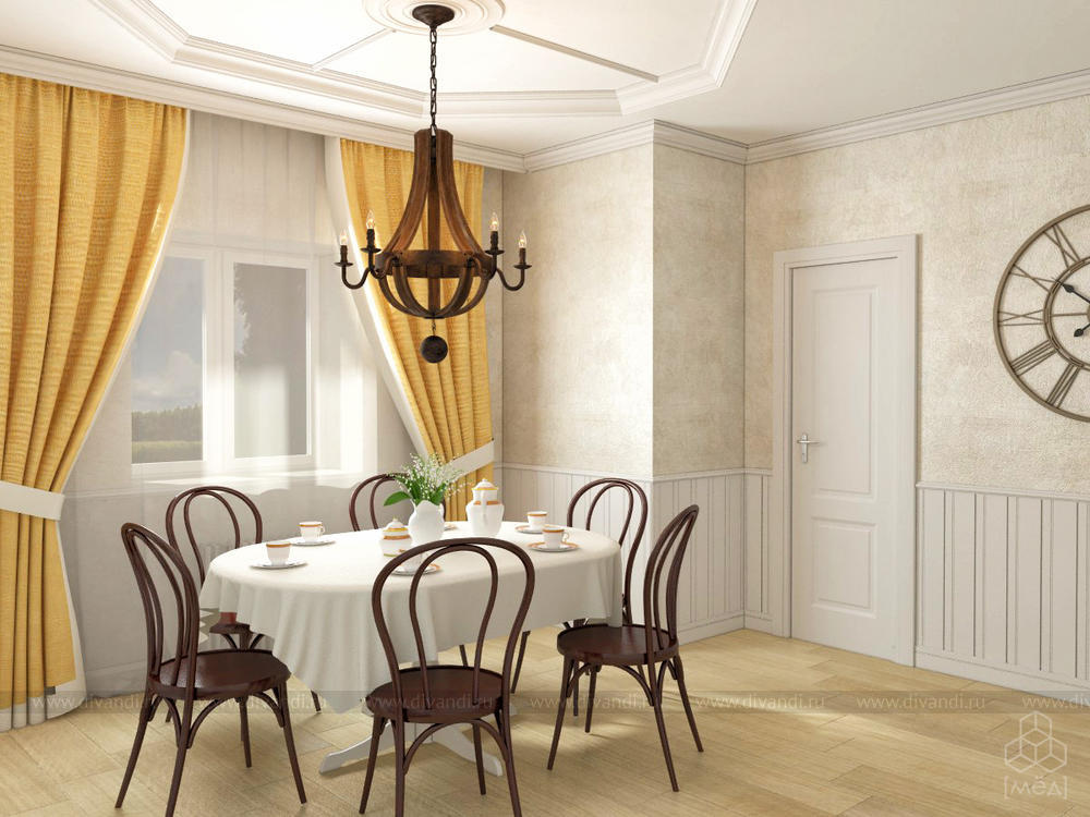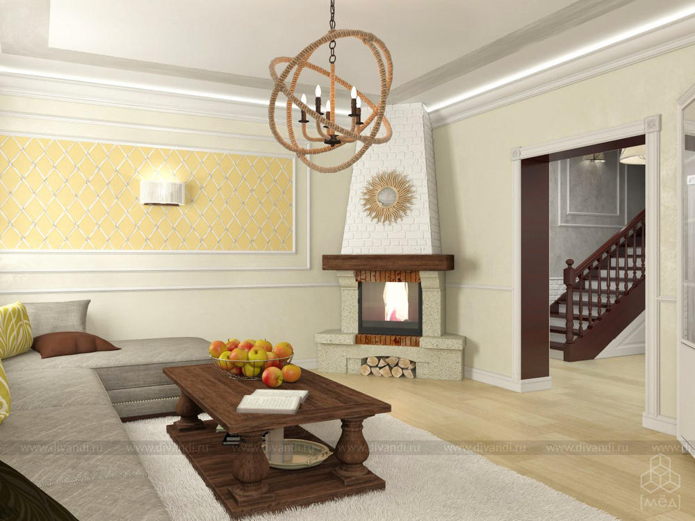 Проект интерьера 2-х этажного коттеджа для большой семьи в стиле прованс и желто-зеленых тонах.