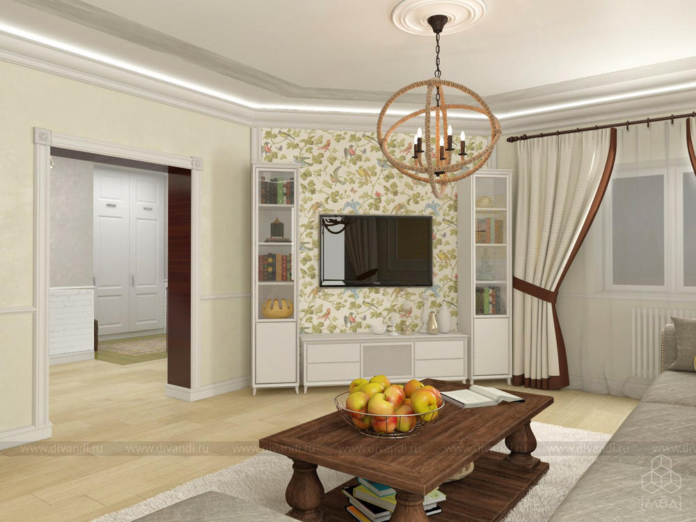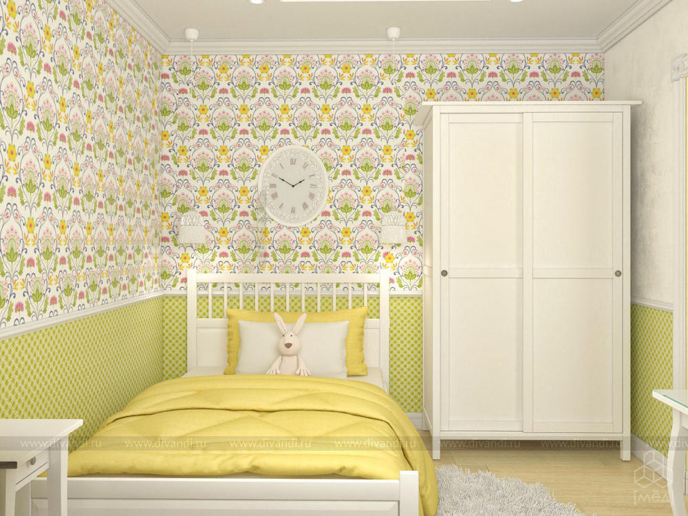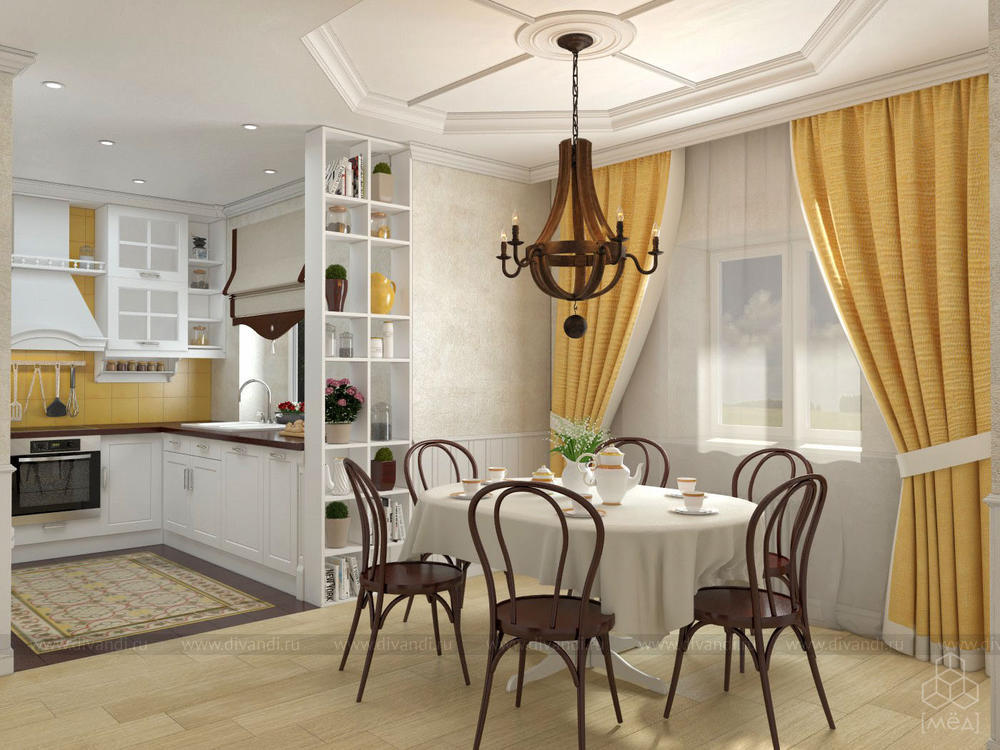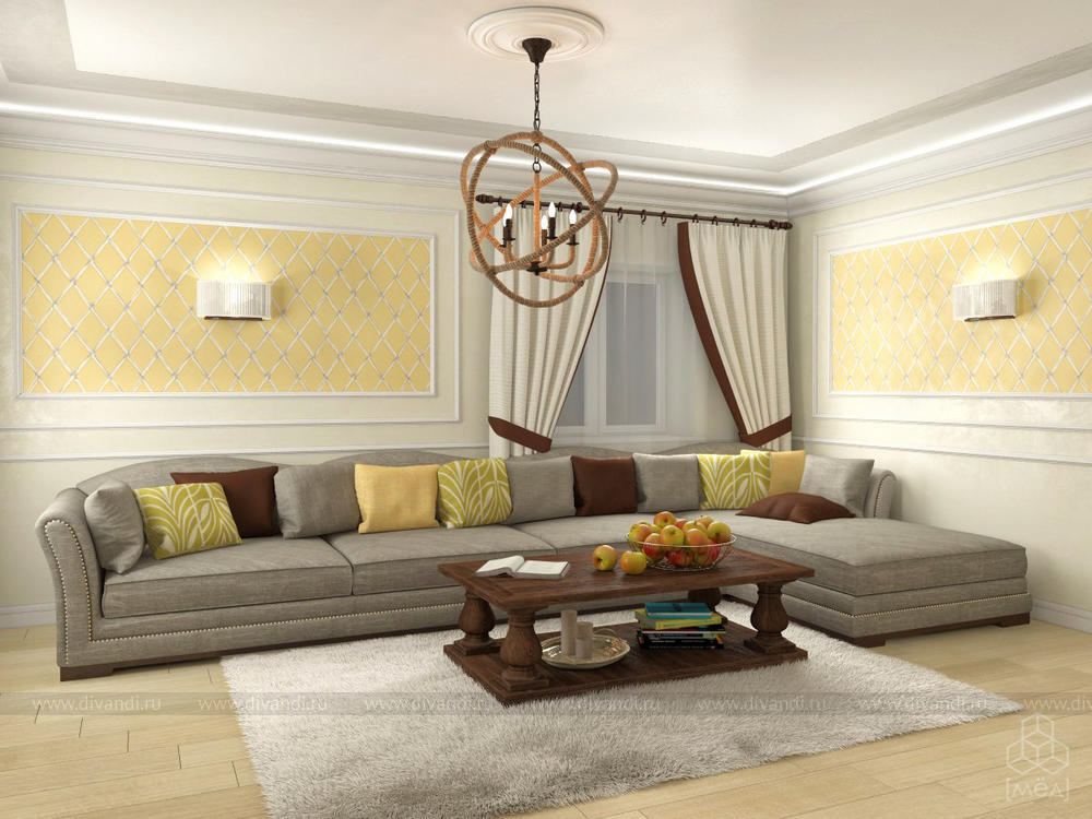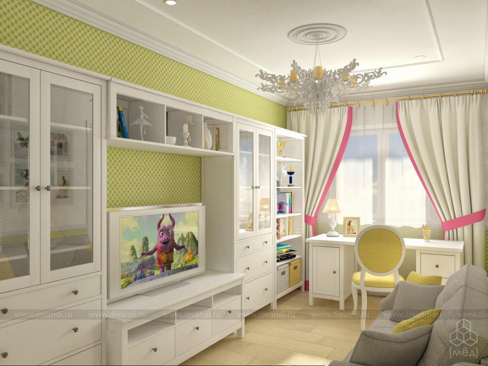 Проект интерьера 2-х этажного коттеджа для большой семьи в стиле прованс и желто-зеленых тонах.