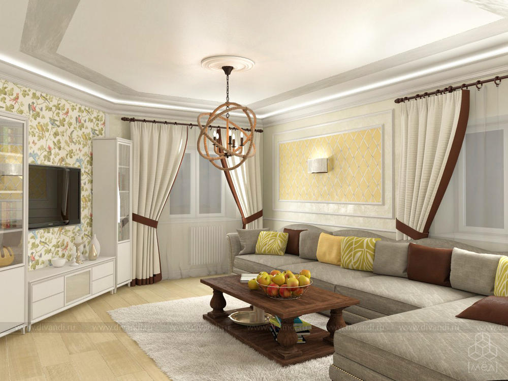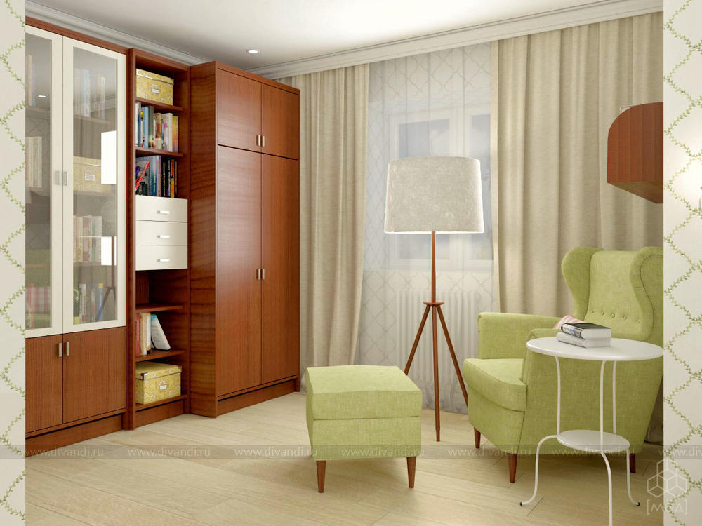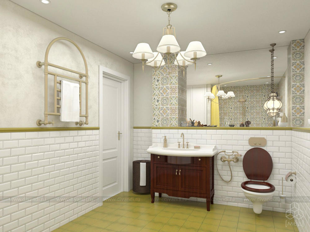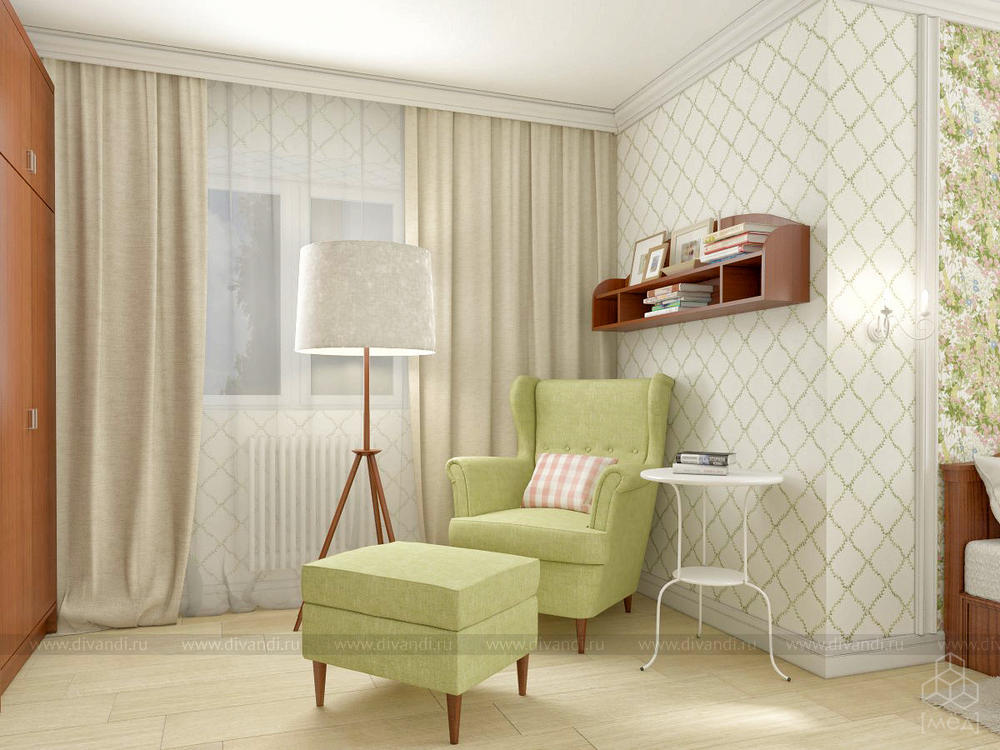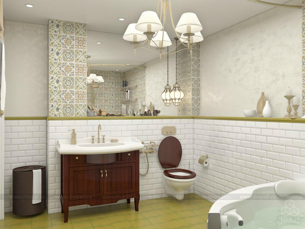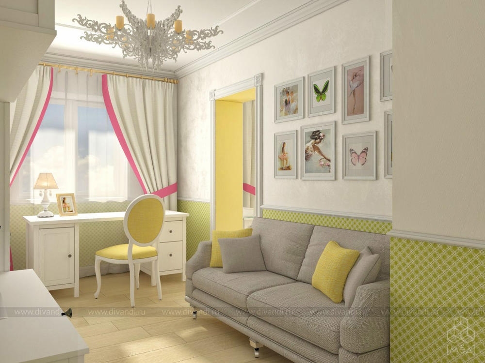 Проект интерьера 2-х этажного коттеджа для большой семьи в стиле прованс и желто-зеленых тонах.