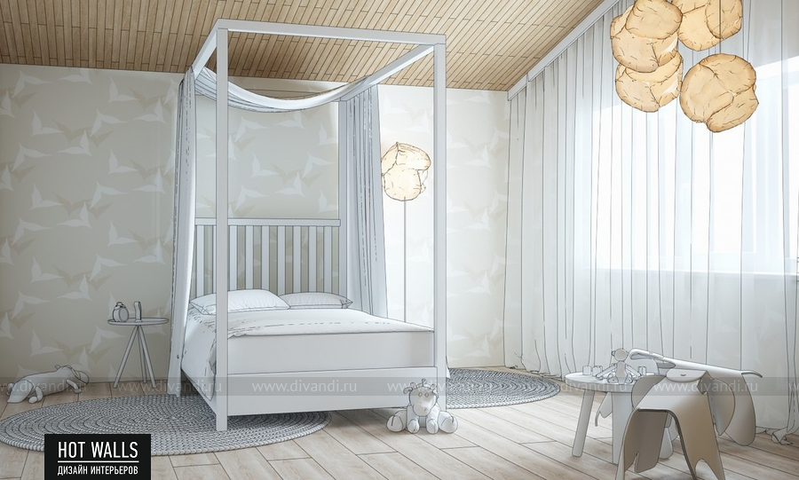 Дизайн интерьера комнаты для девочки "Фламинго"
