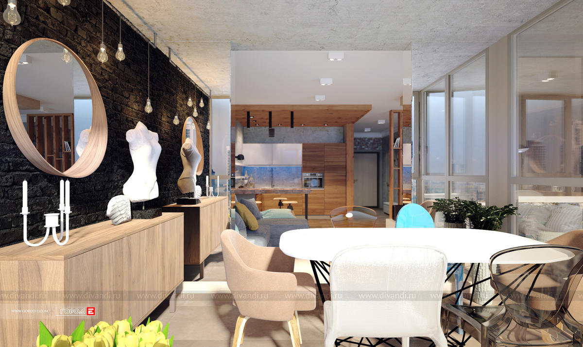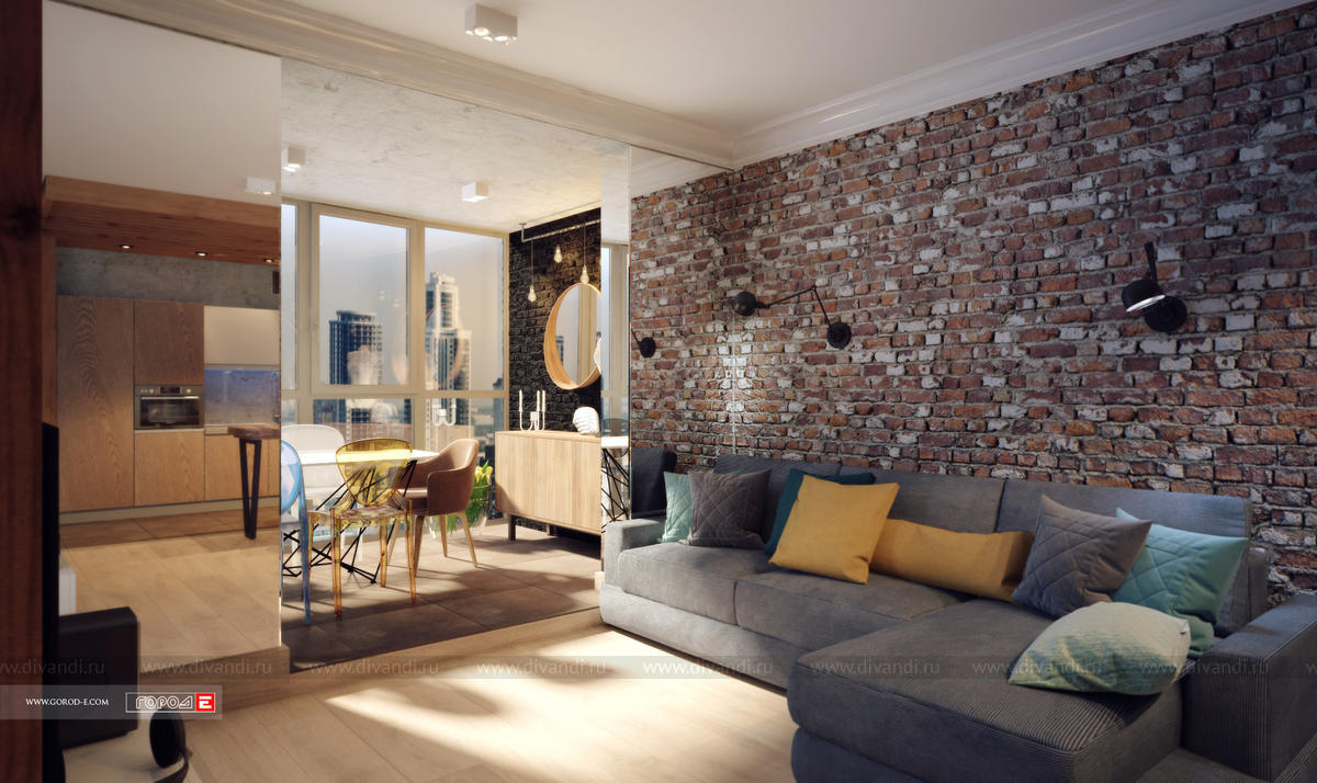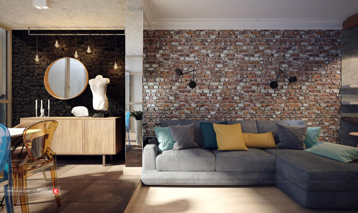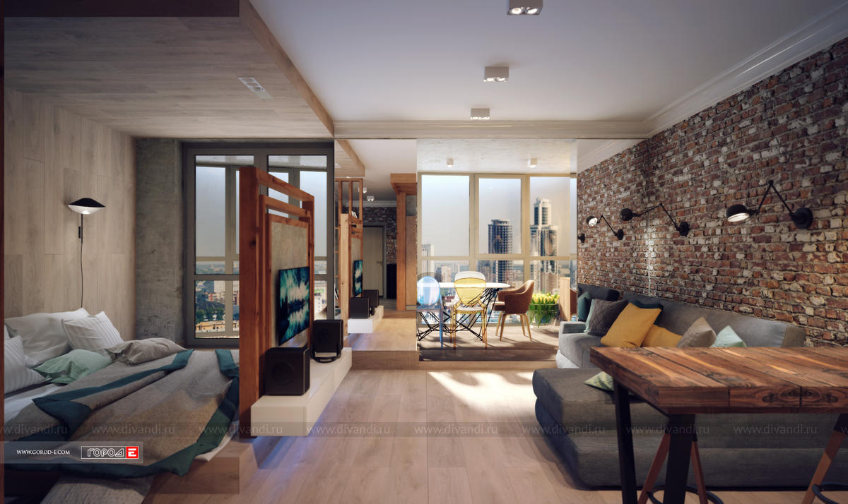 Концептуальный интерьер в стиле ЛОФТ. Свободная планировка однокомнатной квартиры в центре Екатеринбурга. ЖК МЕЧТА , ул.Куйбышева 91. Проект 2017 г.