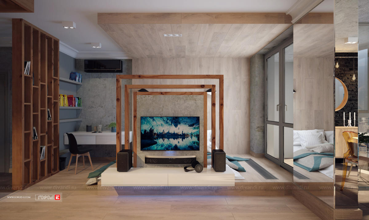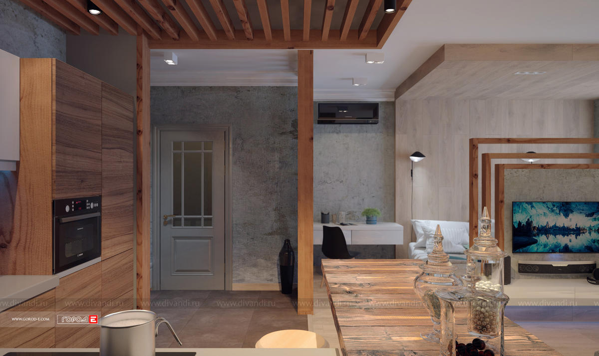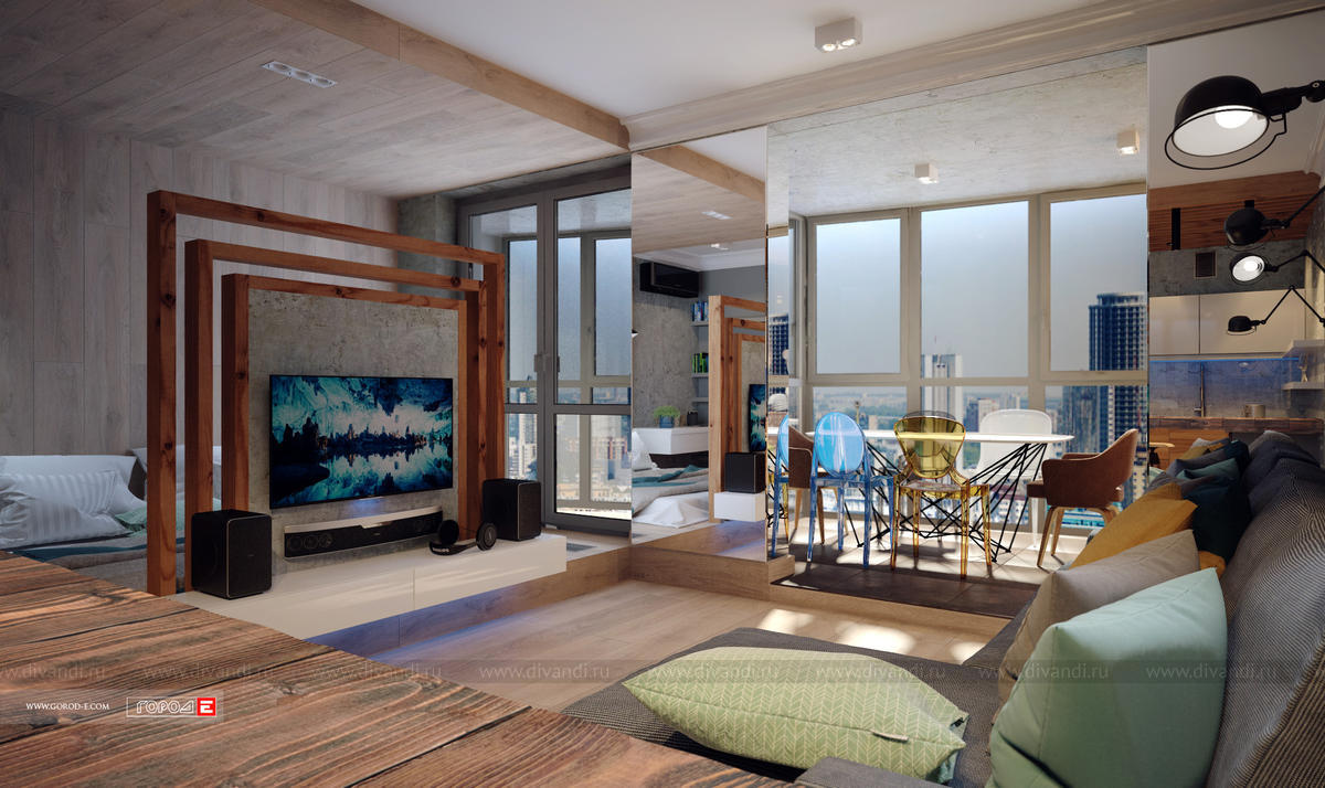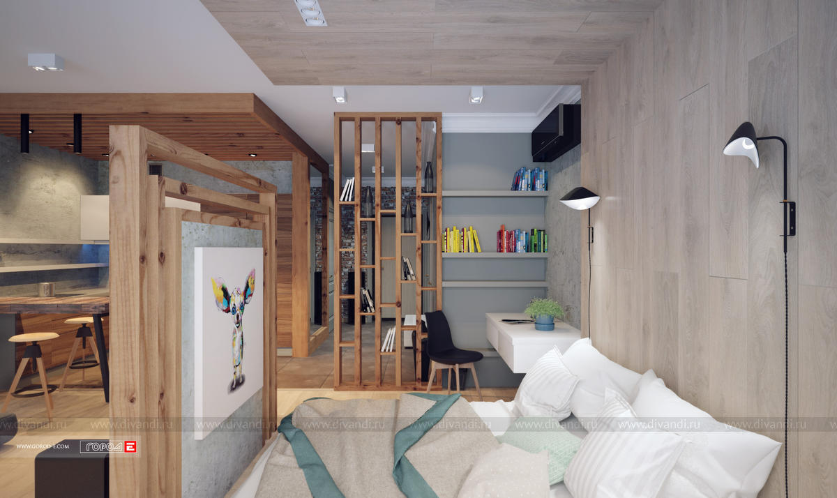 Концептуальный интерьер в стиле ЛОФТ. Свободная планировка однокомнатной квартиры в центре Екатеринбурга. ЖК МЕЧТА , ул.Куйбышева 91. Проект 2017 г.