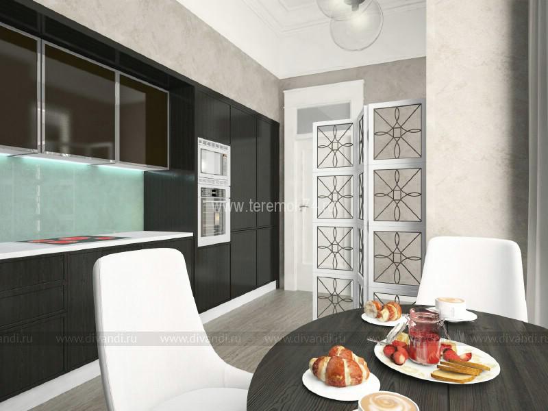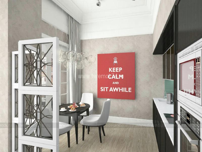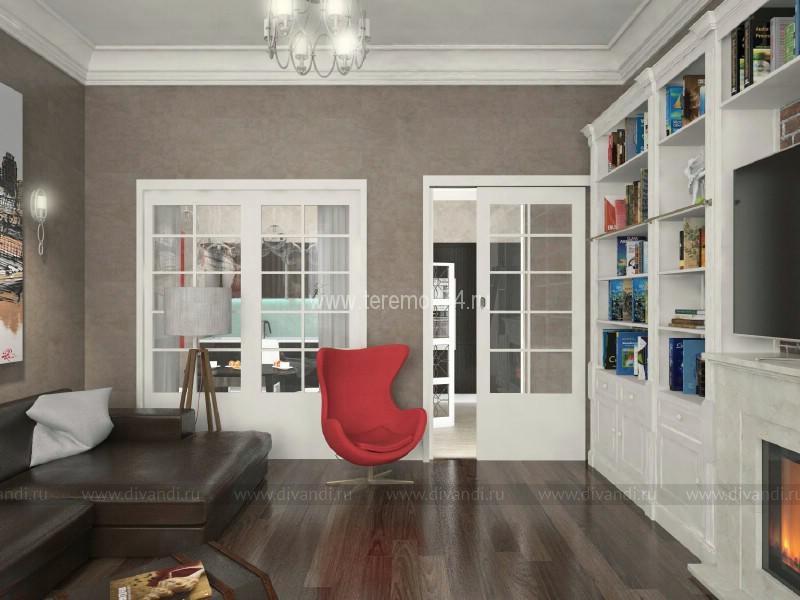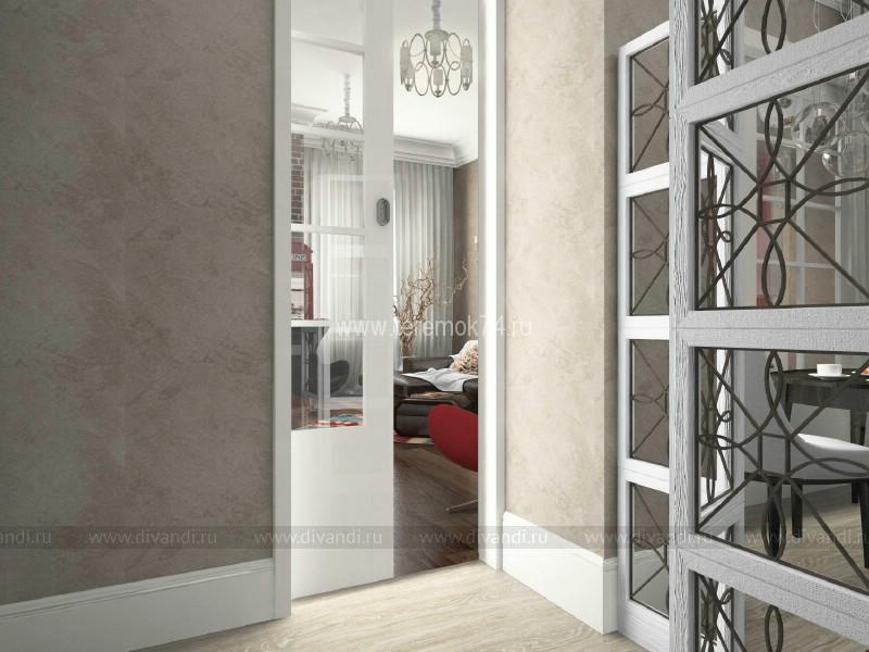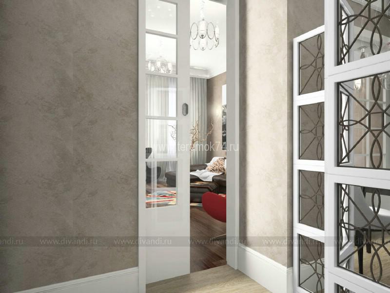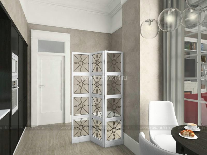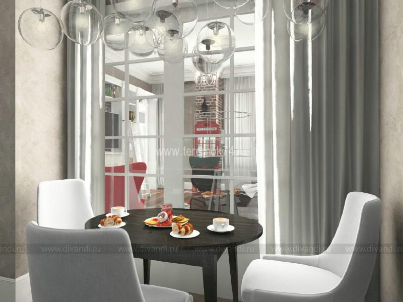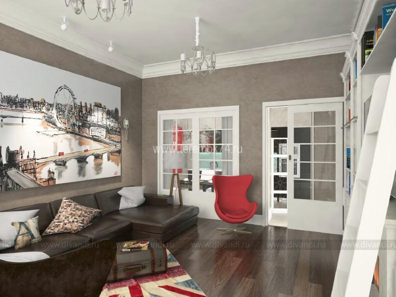 Интерьер, оформленный в стиле фьюжн, можно сравнить с живым организмом, который может постоянно меняться, органично сочетая в себе богемность, простоту и роскошь, оставаясь при этом жизнерадостным и непредсказуемым. Для оформления интерьера гостиной мы выбрали картину британского художника, что стало основой, а другие предметы органично оттеняют и дополняют основную деталь. Мы сохранили нестандартную высоту потолков – 3,7 метра и чтобы подчеркнуть ее использовали карнизы 25 сантиметров. В отделке стен – декоративная штукатурка нескольких видов. Стеклянные перегородки и двери из массива высотой 2,5 метра, с декоративным окном являются связующим элементом этой квартиры.