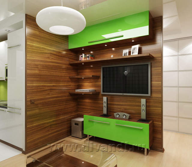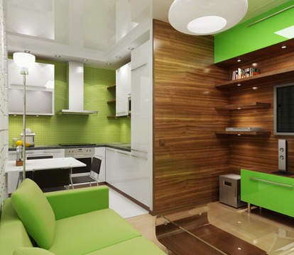 Основной задачей дизайнера в работе над этим проектом являлось грамотное зонирование объекта, с целью рационального использования его полезной площади. Поэтому родилась современная идея квартиры-студии, где были совмещены кухня и гостиная. Это решение не только визуально, но и функционально увеличило пространство гостиной.