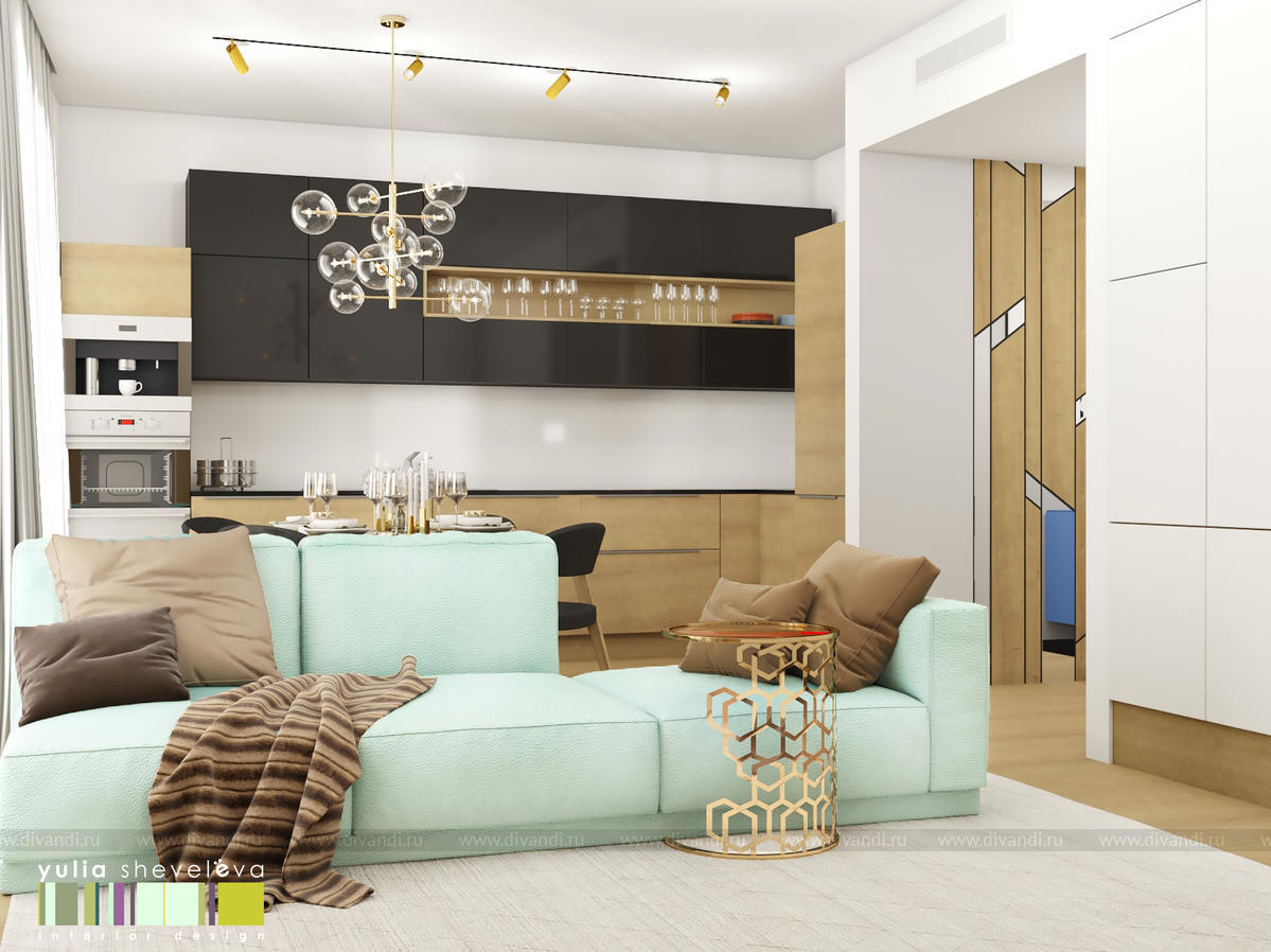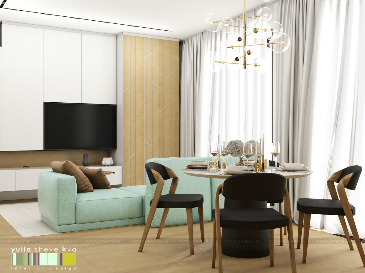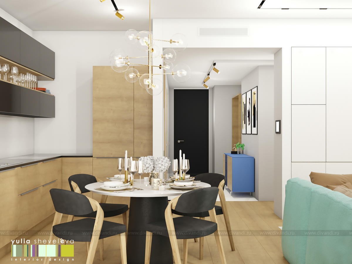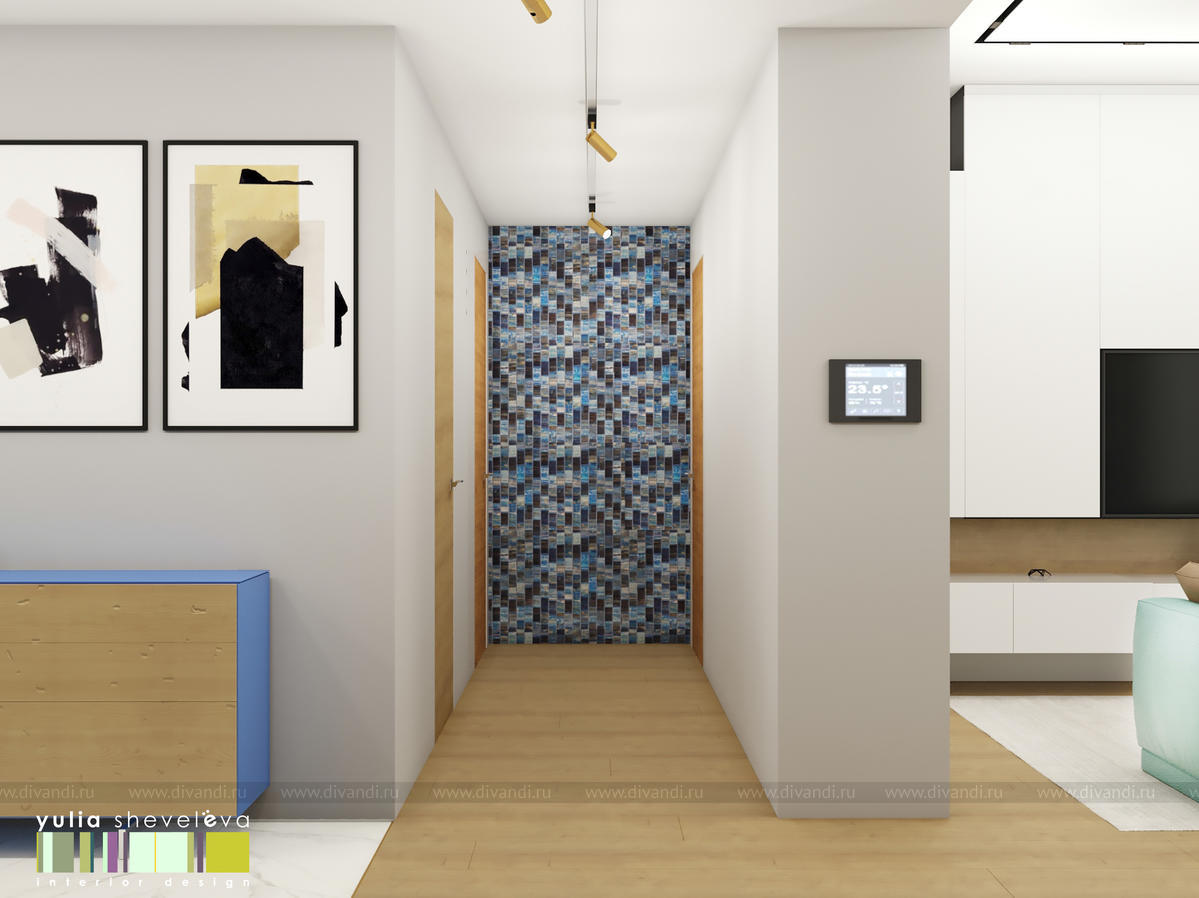 Квартира предназначена для молодой семьи с очаровательным ребенком. Интерьер выполнен в современном стиле, а отделке использованы преимущественно натуральные материалы. Планировку от застройщика мы не стали менять. Оставили все как есть, потому что она полностью устраивала хозяев квартиры по функционалу.