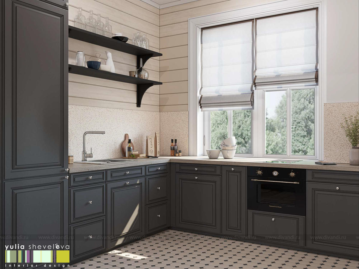 Тип проекта: загородный дом, кухня, ванная, гостиная