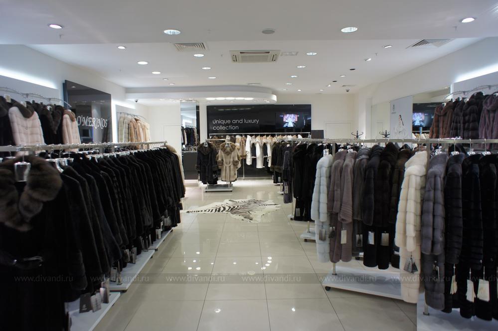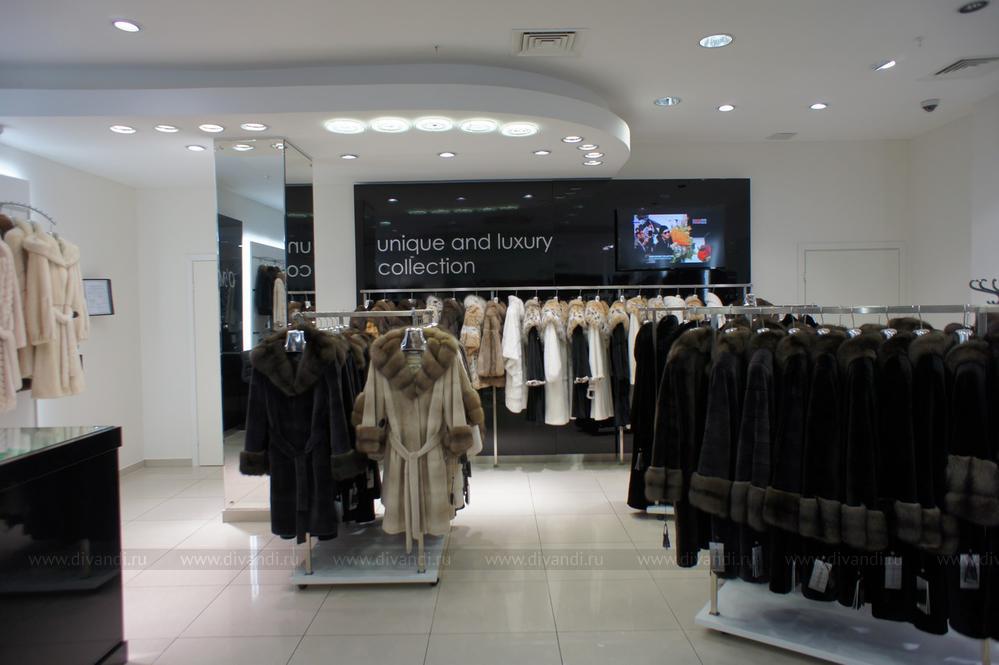 Правильное зонирование пространства и светлая отделка мехового салона “O’MERINOS” обеспечивает посетителям хороший просмотр товара и подчеркивает его индивидуальность.