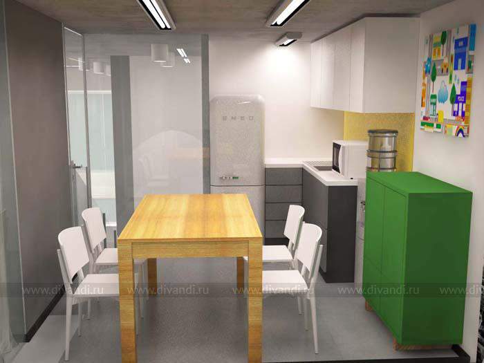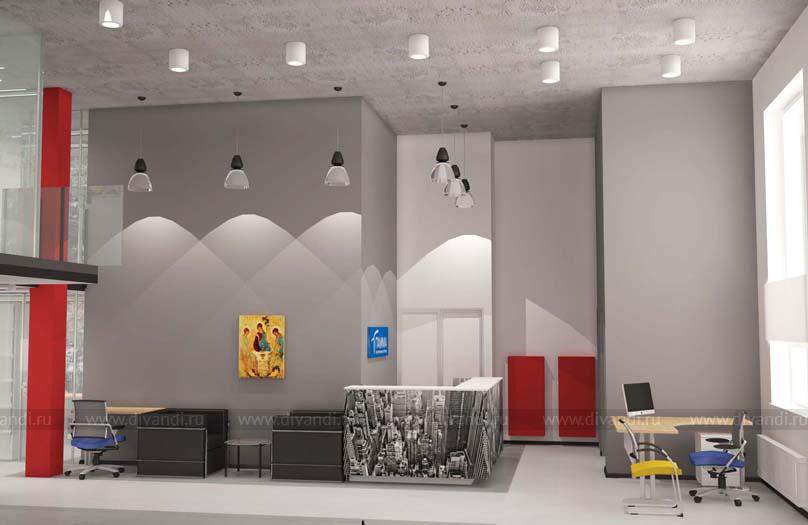 Небольшая и растущая строительная компания. Первое помещение в собственности. Бюджет, естественно, ограничен. Впрочем, как у всех молодых компаний. К счастью, современные тенденции позволяют и в ограниченном бюджете сделать офис и представительным для клиентов, и комфортным для персонала. Действуем на контрасте: хорошая мебель, модный технический свет, стеклянные перегородки во всех кабинетах и современная сантехника с одной стороны и бетонный необработанный потолок, стены под покраску, фотообои и недорогой керамогранит с другой. Нейтральный серый цвет, как основа, чтобы глаза не уставали и оставалось больше «воздуха» и яркие акценты для придания динамики, эмоциональной разрядки, разнообразия. В такой офис хочется приходить и не хочется уходить.