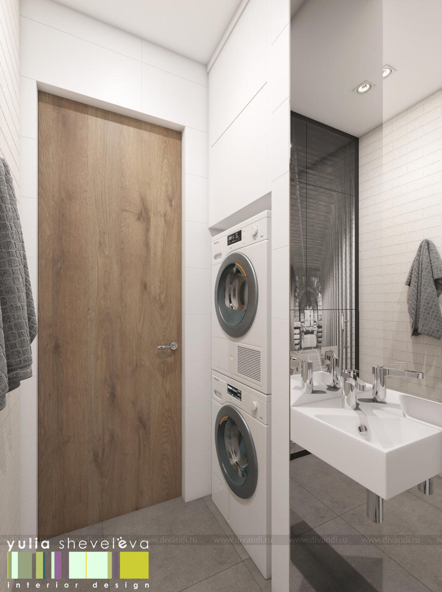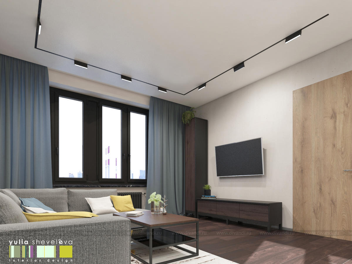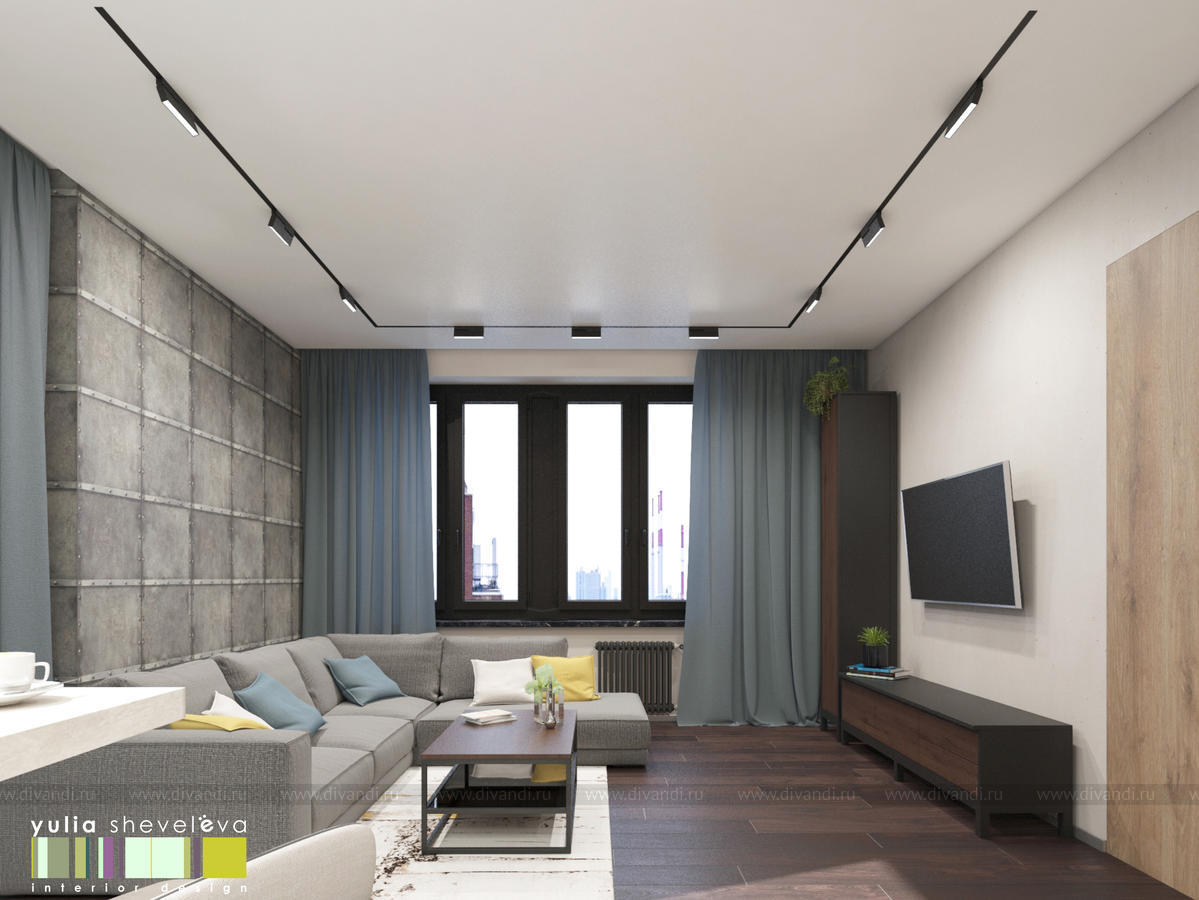 Квартира для молодой семьи в Москве, ЖК Савеловский Сити, общая площадь = 88 м кв. Формат жилого комплекса, его стиль и архитектура задали общий тон и настроение интерьера, которое захотелось привнести хозяевам в свой новый интерьер.