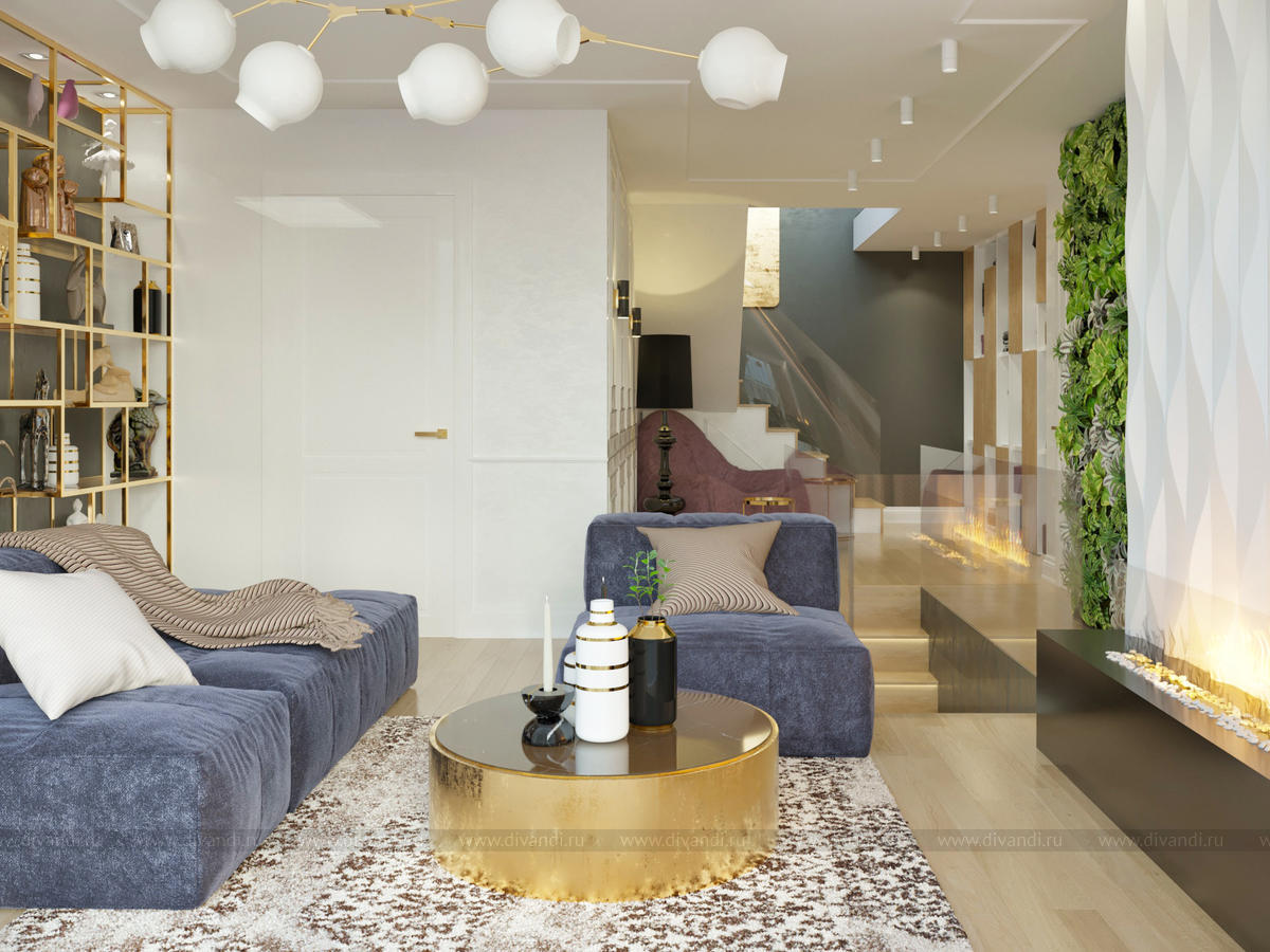 [Мрамор] Гостиная в 2-х уровневой квартире