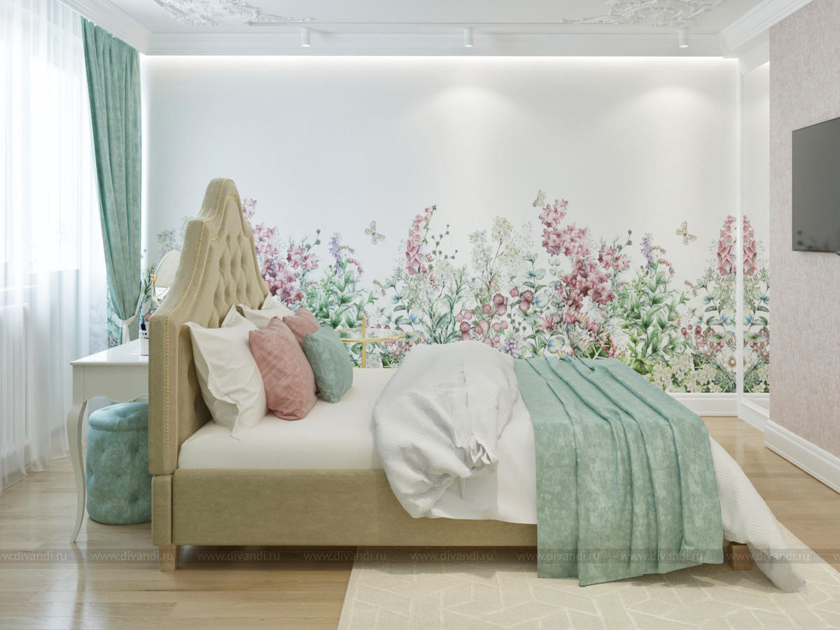 Дизайн интерьера комнаты для девочки "Фламинго"