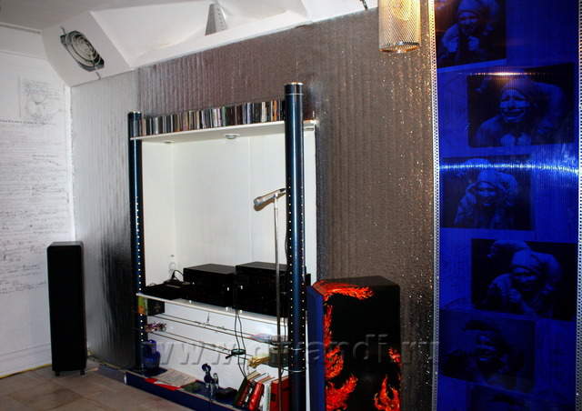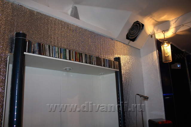 Оставшееся пространство было оборудовано качественной акустической системой, часть которой мы вмонтировали в потолочные короба для достижения объемного звучания и расположив совместно с ними встроенную нишу для центра управления всей системой. В добавлении к хорошему звуку, еще используется множество вариантов сочетаний встроенного и основного освещения, которое выбирается в соответствии с эмоциональным фоном заказчика.