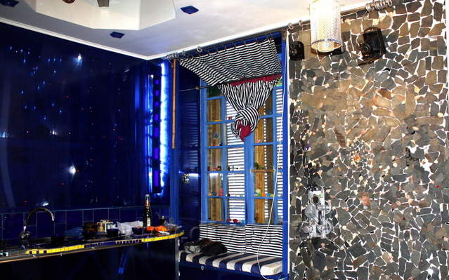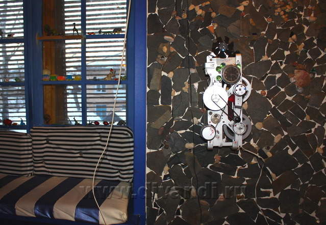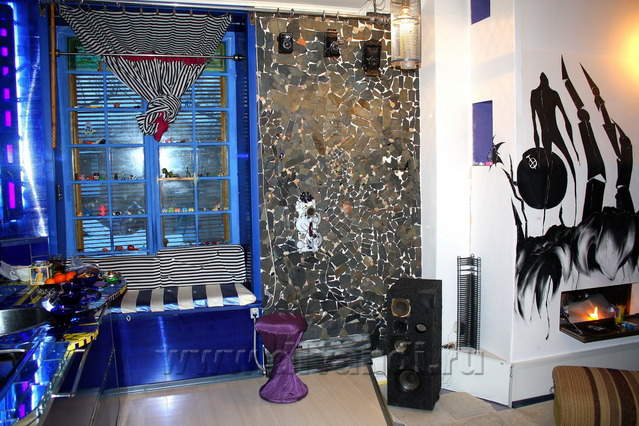 К примеру, в качестве облицовочного материала для отделки стен мы применили большое количество натурального камня, а также использовали предметы интерьера и декорирования собственного, авторского изготовления, в сочетании с различными вариантами освещения и подсветок малых интерьерных сцен.