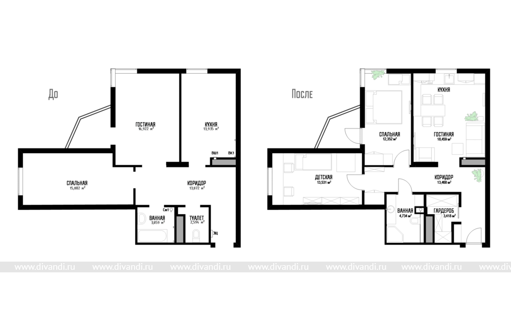 Тип проекта: квартира, спальня, детская, кухня, ванная, гостиная