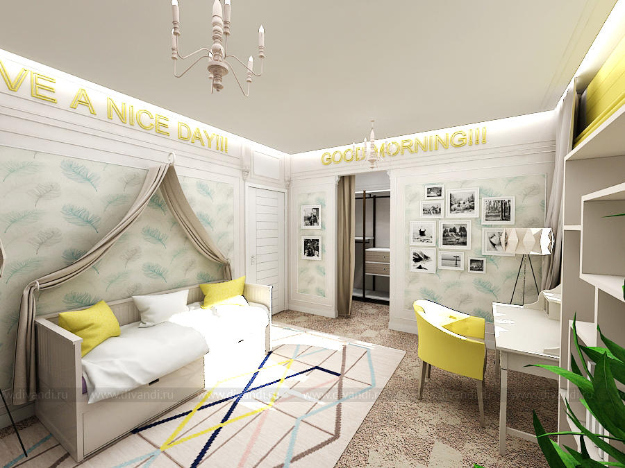 Дизайн интерьера комнаты для девочки "Фламинго"