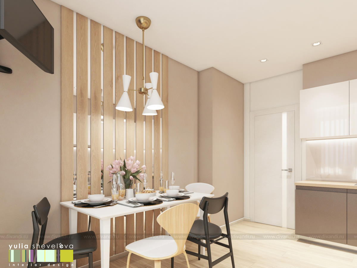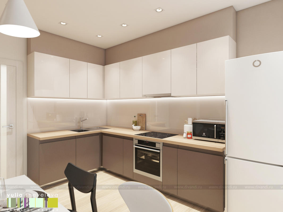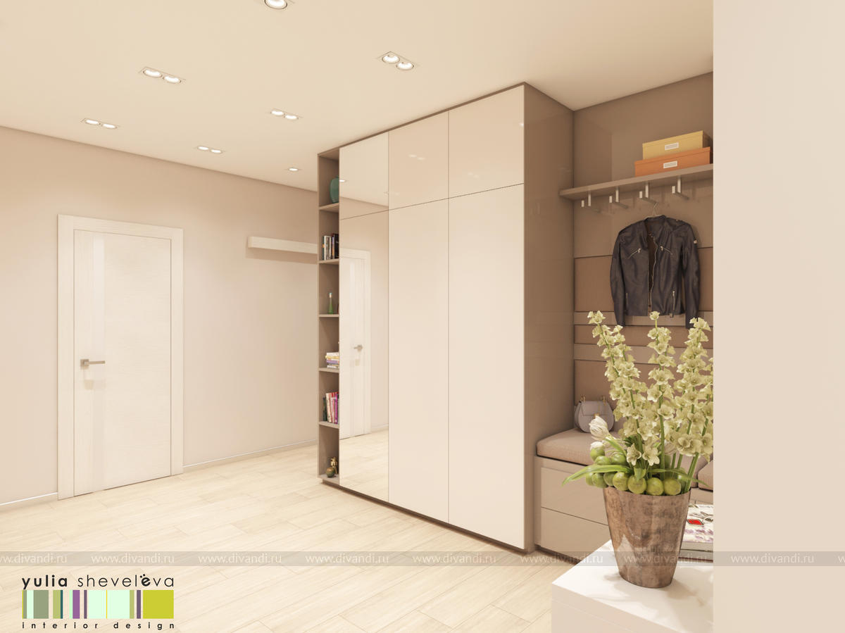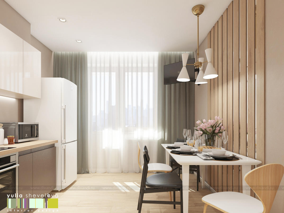 Стиль интерьера был выбран современный, с элементами эко стиля. Предпочтение было отдано теплой цветовой палитре, оттенкам бежевого, карамели, приглушенным зеленым тонам.