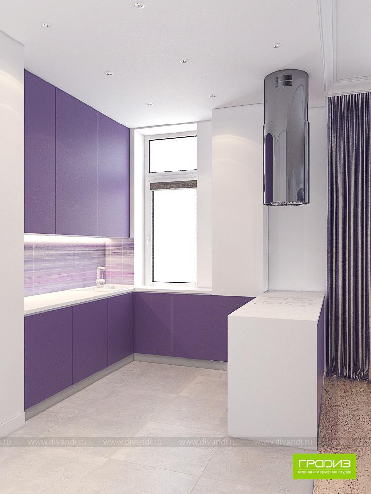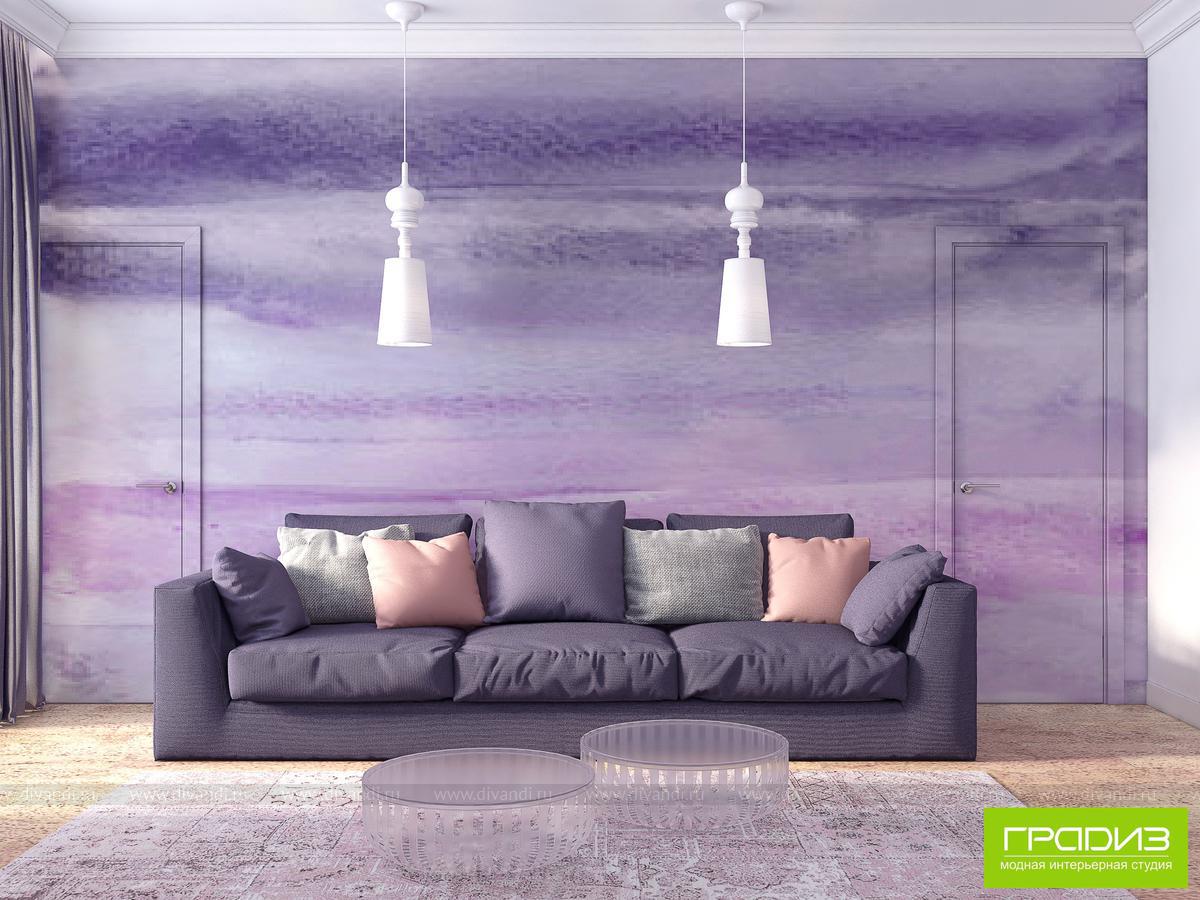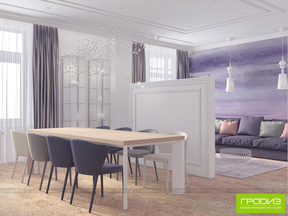 Оригинальная кухня-гостиная, в которой на первый план вышло увлечение Заказчицы изготовлением изделий из керамики. Сам интерьер нейтральный и лаконичный: акцент сделан на арт-объекте из керамических шариков. Стена за диваном имитирует акварель, поддерживает ее кухонный фартук, который будет расписан лично хозяйкой квартиры.