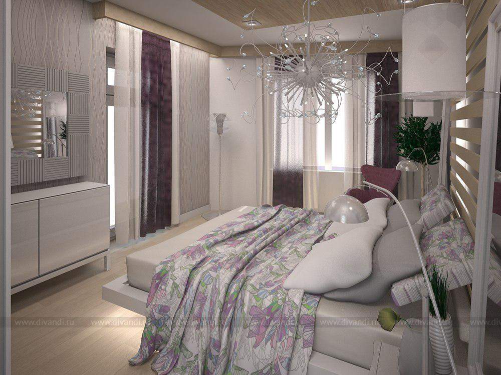 Нежные оттенки, фантастическая люстра, натуральные фактуры, игра со светом создает в комнате нужную атмосферу и настраивает на романтический лад.
