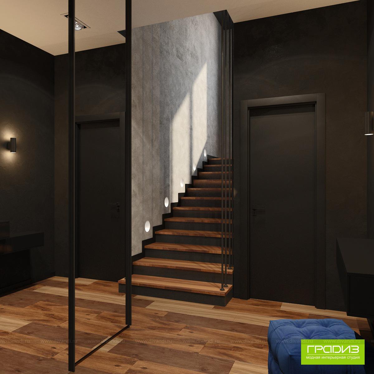 Минималистичный стильный интерьер таунхауса в г. Лесном (Свердловская область). В доме преобладают черные цвета, скрытые конструкции, понятные материалы. В общем, ничего лишнего!
