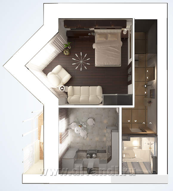 Однокомнатная квартира для молодого человека, интерьер квартиры современный и минималистичный.