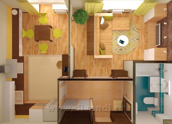 Проект типовой однокомнатной квартиры был выполнен в кратчайшие сроки – всего за 2 дня – на основе уже наработанных идей в качестве рекламного проекта для одного из застройщиков Екатеринбурга.