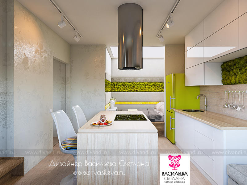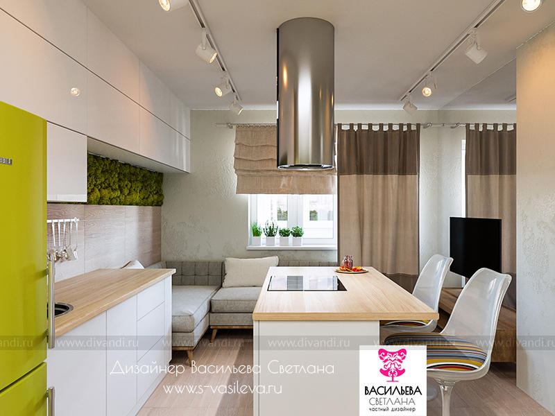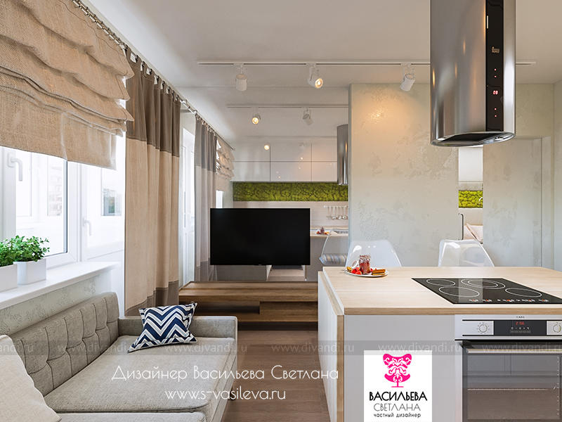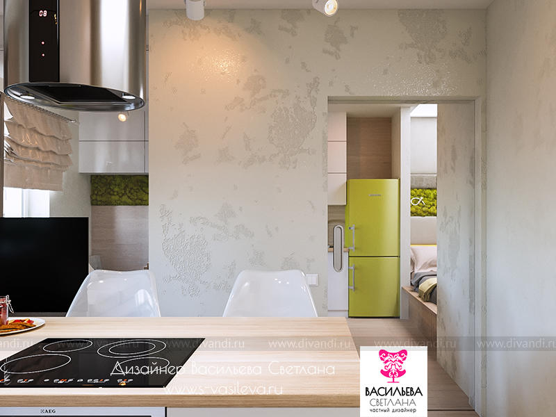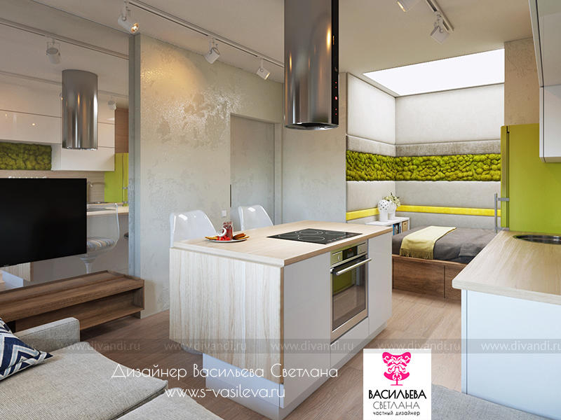 Кто сказал, что в однокомнатной квартире невозможно уместить все необходимые функциональные зоны- кухню, гостиную, спальную и отдельную детскую комнату?