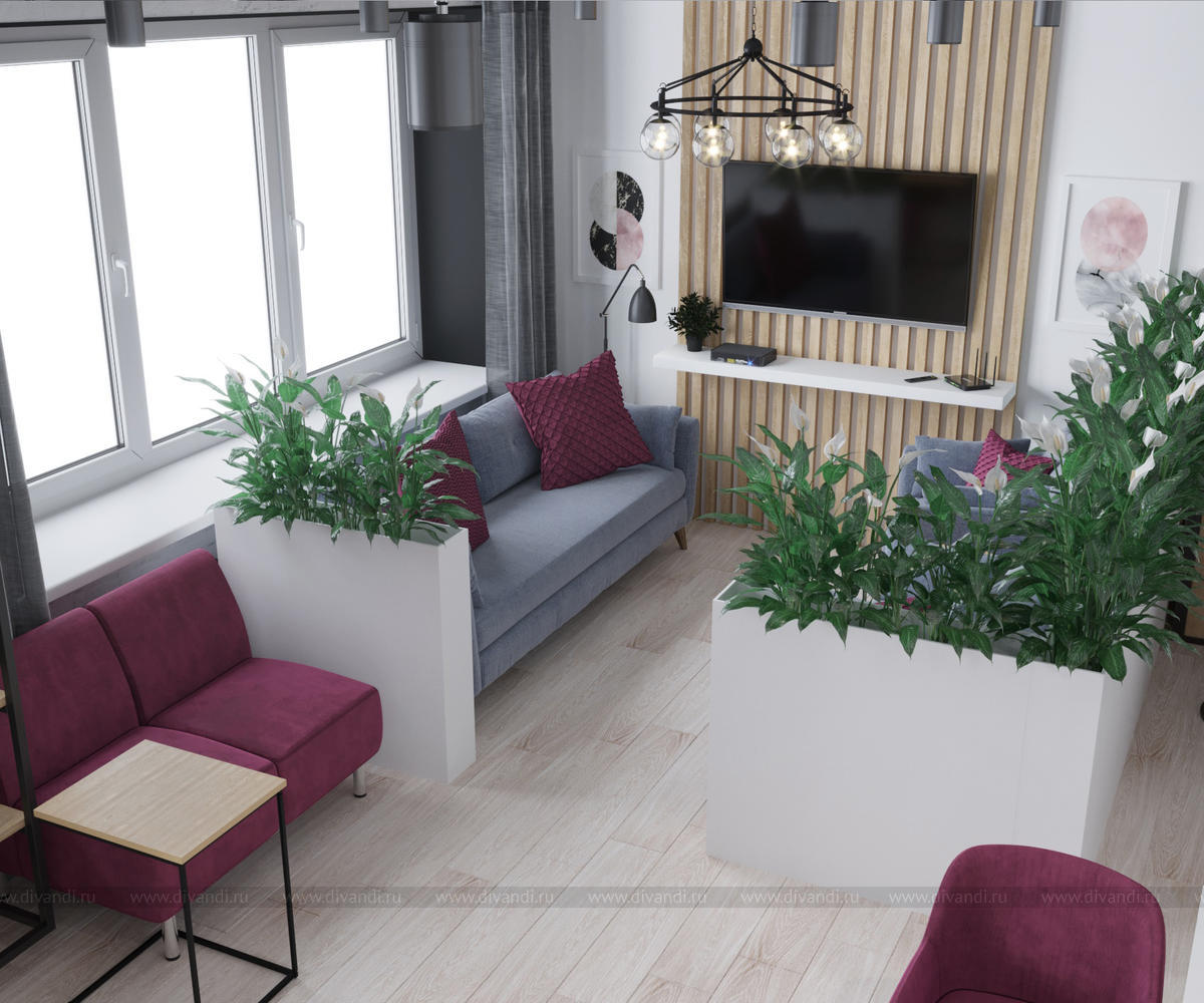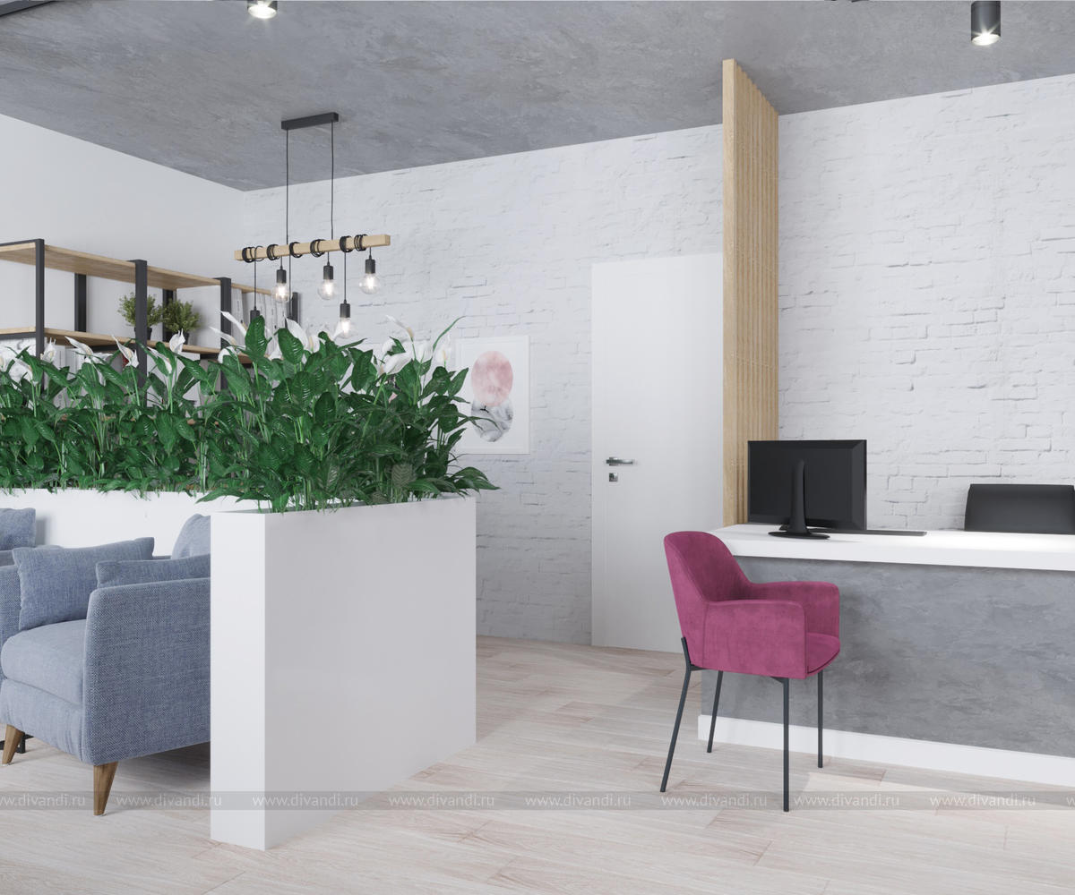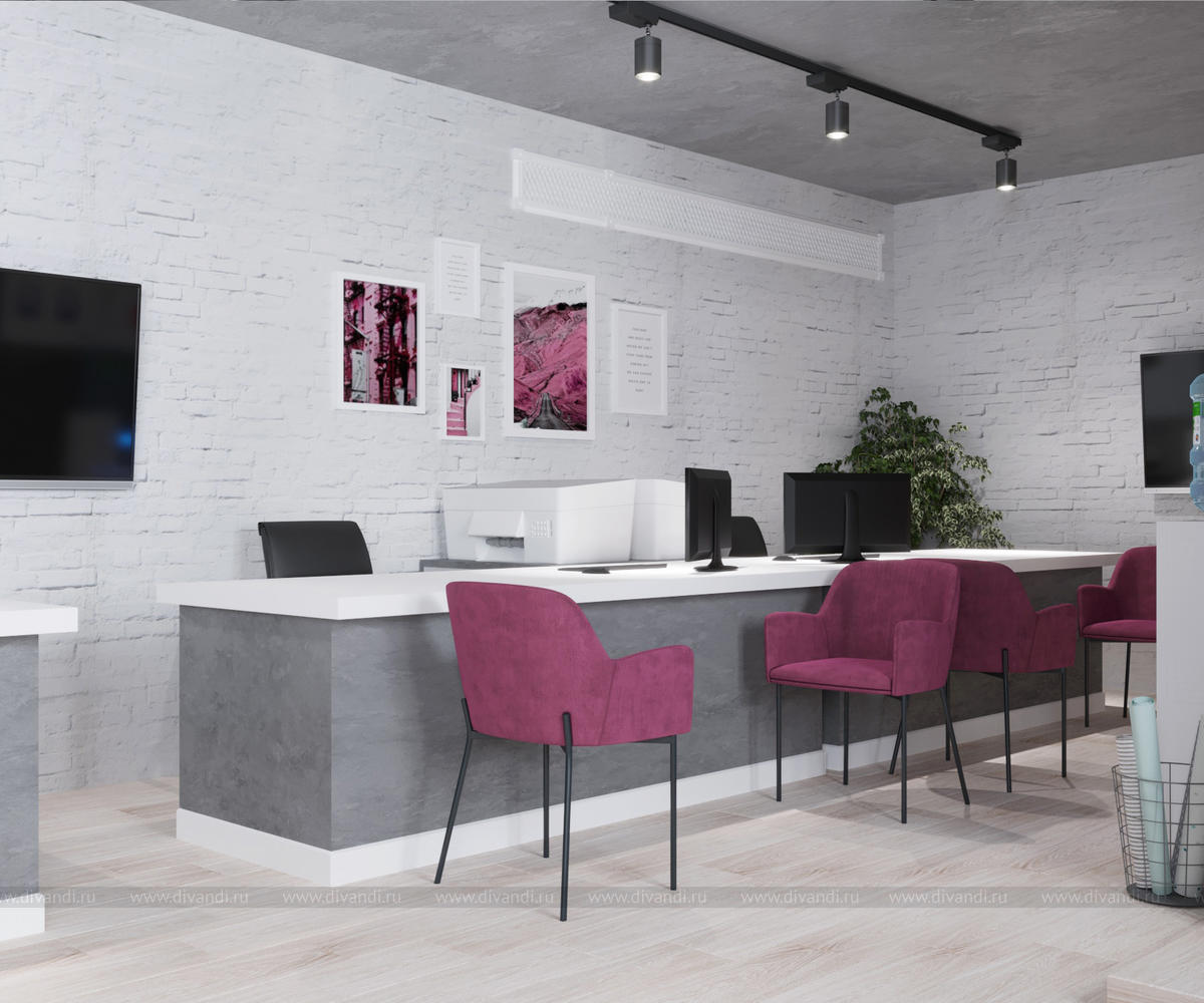 Наша студия разработала дизайн проект офиса продаж для известного интернет провайдера в Екатеринбурге "Планета". Заказчик выбрал стиль "Лофт" и попросил, чтобы в деталях интерьера был их фирменных розовый цвет. Так же мы предусмотрели детскую игровую комнату для детей посетителей офиса.