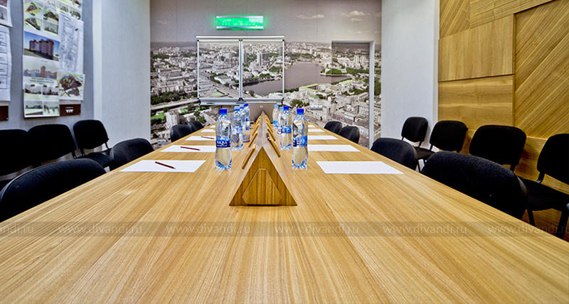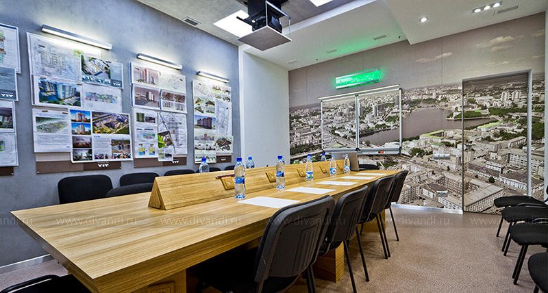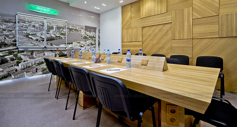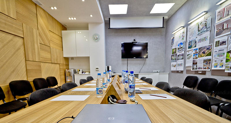 Переговорная комната. Реализованный объект. На фото видно "выезжающий" из потолка лифт проектором, ставший главной фишкой проекта.
