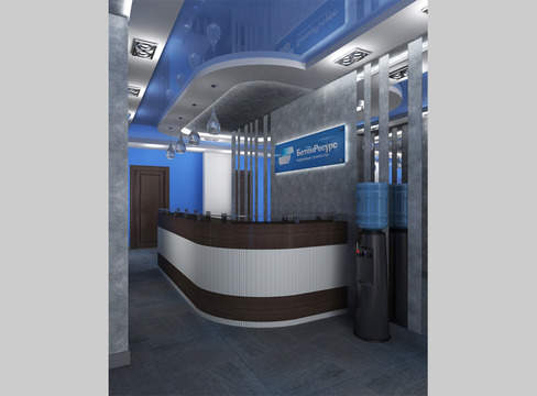 Основной задачей архитектора Сергея Абрамова на данном объекте являлось удобное зонирование холла с зоной ресепшен и зоной ожидания посетителей, а так же зонирование кабинета руководителей, комнаты для переговоров и комнаты отдыха. Приступая к разработке интерьера холла, необходимо было учесть фирменный стиль компании, а так же специфику её деятельности именно поэтому половое покрытие (Керамогранит Pizarra фабрики Ceracasa Ceramica - Испания) и стены помещения в зоне ресепшен имитируют фактуру бетона, а остальные части стен и потолка перекликаются с фирменными цветами компании БетонРесурс. В кабинете руководителей и в комнате для переговоров было решено выполнить интерьер в стиле Ар-деко́. Интерьер комнаты отдыха по задумке архитектора должен напоминать пентхаус в Нью-йорке. Поэтому на стенах комнаты появились граффити, эмитирующие окна с видом на ночной город. Граффити были разработаны и выполнены нашими партнерами проектом Aeproduction.