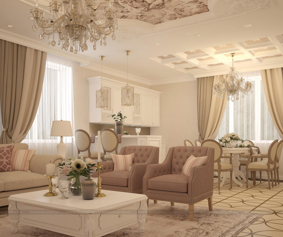 Оформление интерьера гостиной комнаты в Классическом