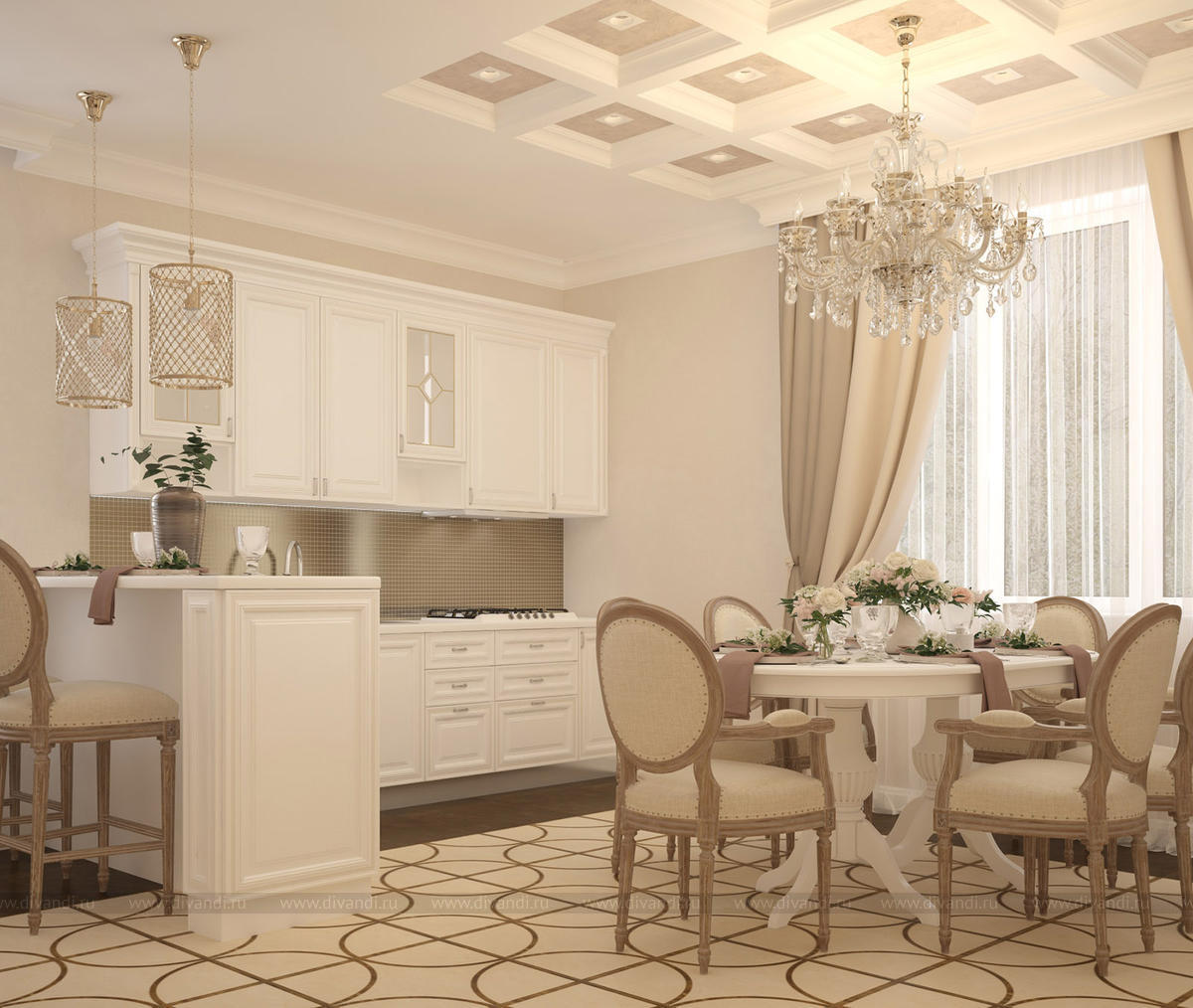 Уютная кухня-гостиная в любимом доме