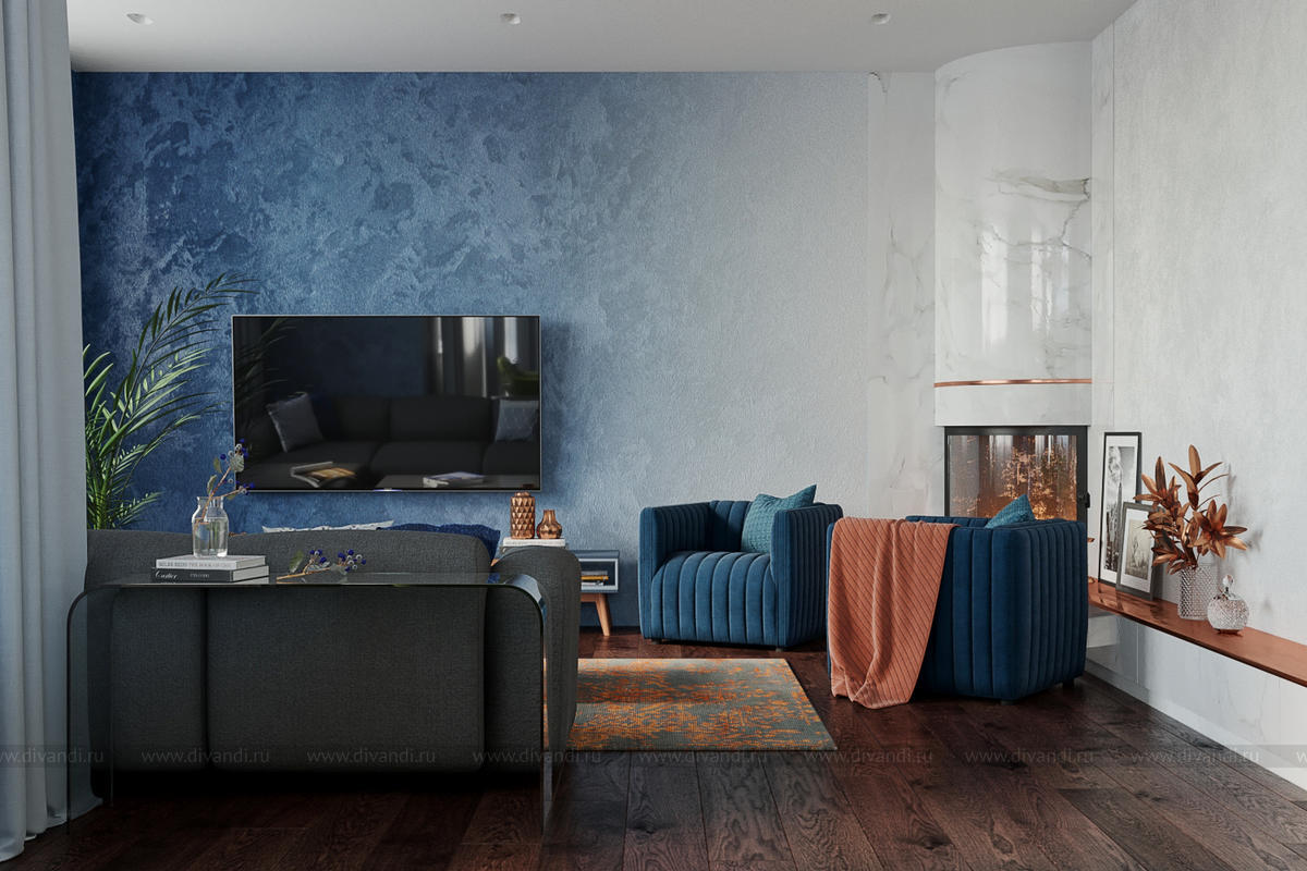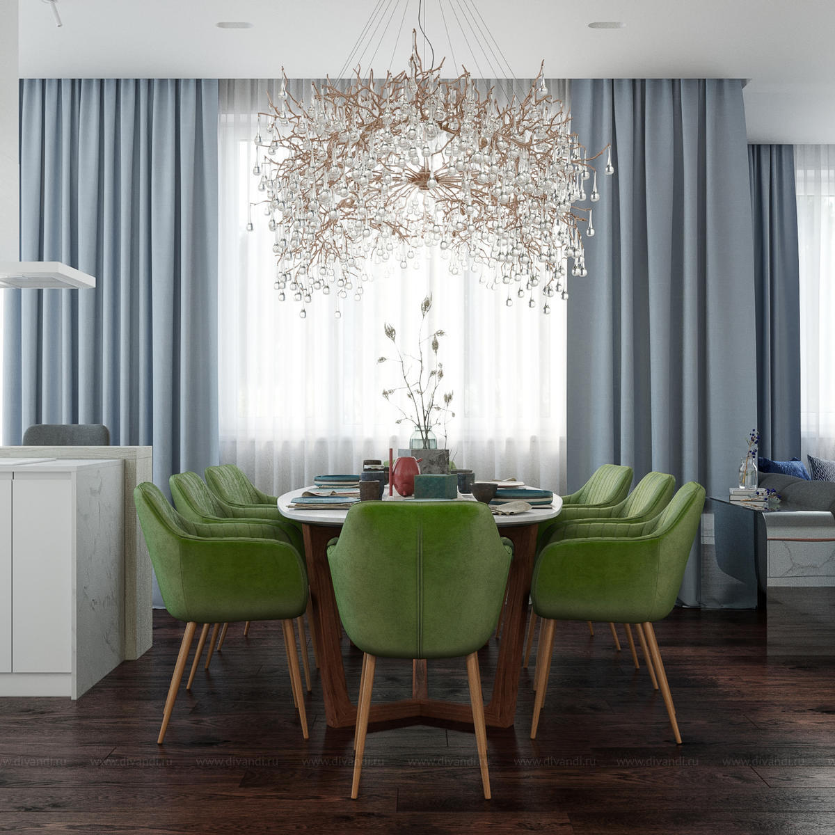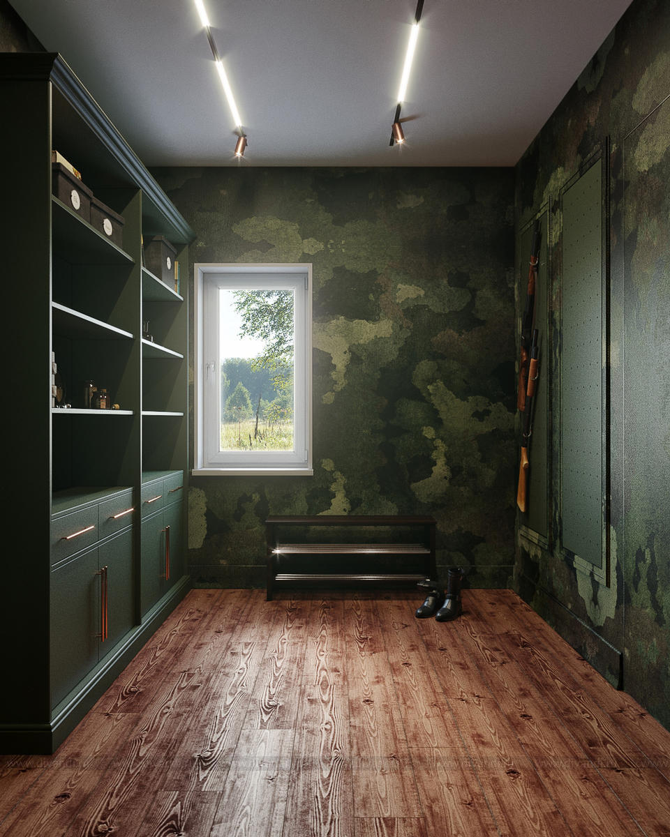 Название-идея проекта появилась из истории, которую мы придумали, пообщавшись с заказчиком. Хозяин дома любит природу, охоту, рыбалку и утренние прогулки по лесу. Ранним утром мы выходим на прогулку по еще полуспящему лесу. Туман. Восходящее солнце. Небо еще не полностью озарилось светом. Мох. Черника. И вот мы, прогуливаясь по этому утреннему раю, собираем чернику в лукошко. Нагулявшись вдоволь, возвращаемся в уютный дом, где бабушка или мама готовит из наших ягод вкуснейшие пироги. Мы кушаем их за завтраком с горячим чаем. День начался!